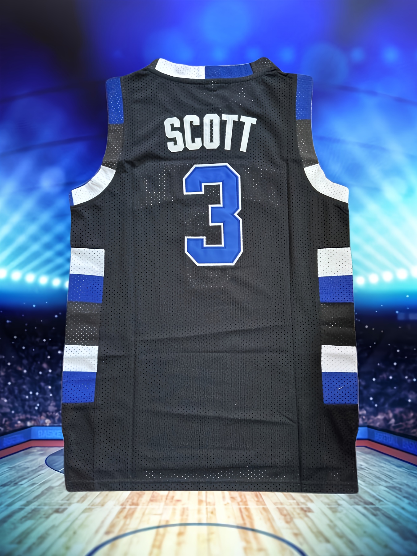 1pc Men’s #3 Vintage Basketball Jersey – 100% Polyester Knit Fabric, Embroidered Lettering, Sleeveless V-Neck Sports Uniform for Training & Competition, Loose Fit for Casual/Team Sports/Outdoor Activities, Breathable, Perfect for Summer