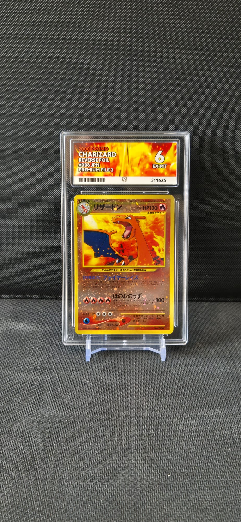 The 2000 Promo Premium File 2 Charizard #006 JPN ACE 6 is priced at $80.00. Free shipping is available on orders over $49.