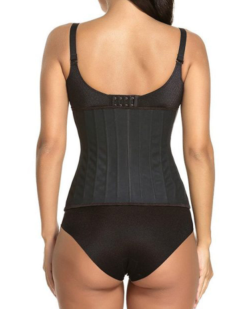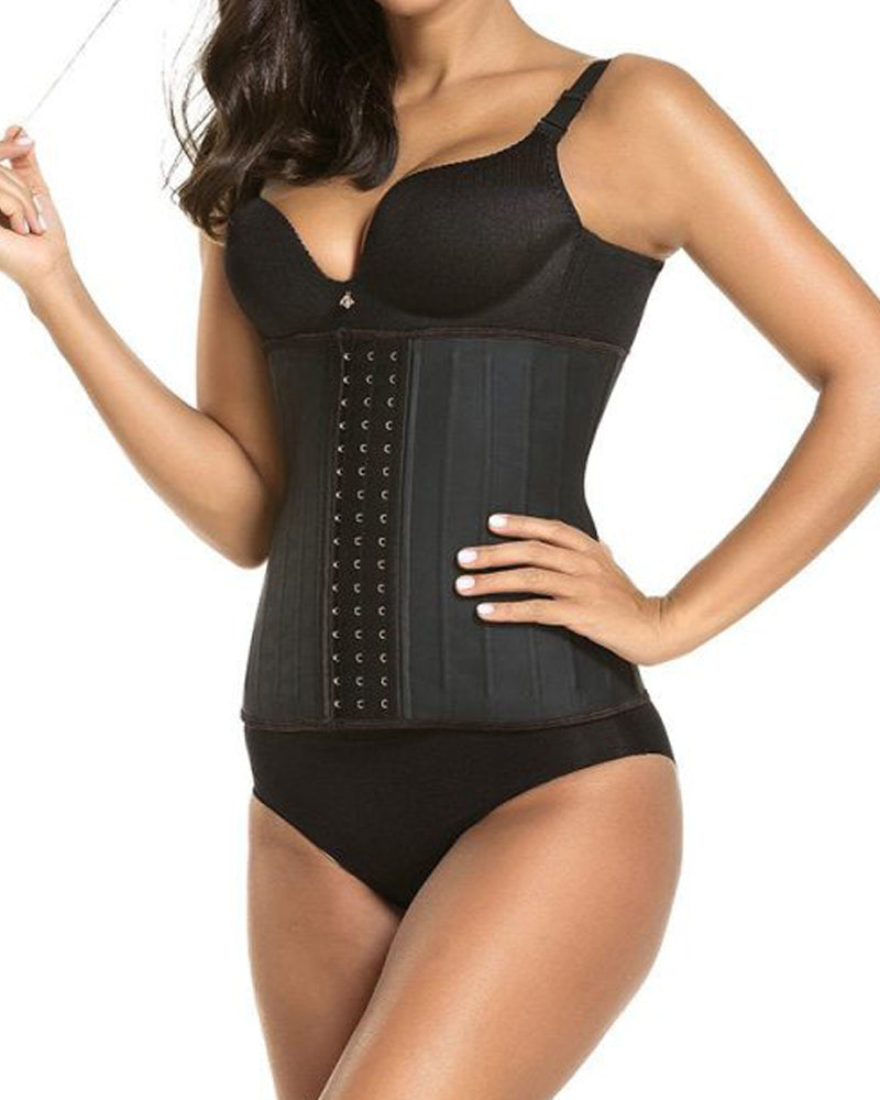 Crafted with high-quality materials, the waist trainer features 25 durable steel bones that work to cinch your midsection, creating a sleek, streamlined silhouette. The adjustable design allows you to customize the level of compression, ensuring a secure and comfortable fit that molds to your unique shape. Whether you're looking to enhance your workout performance, achieve a flatter stomach, or simply feel more confident in your own skin, this waist trainer is the ultimate solution.