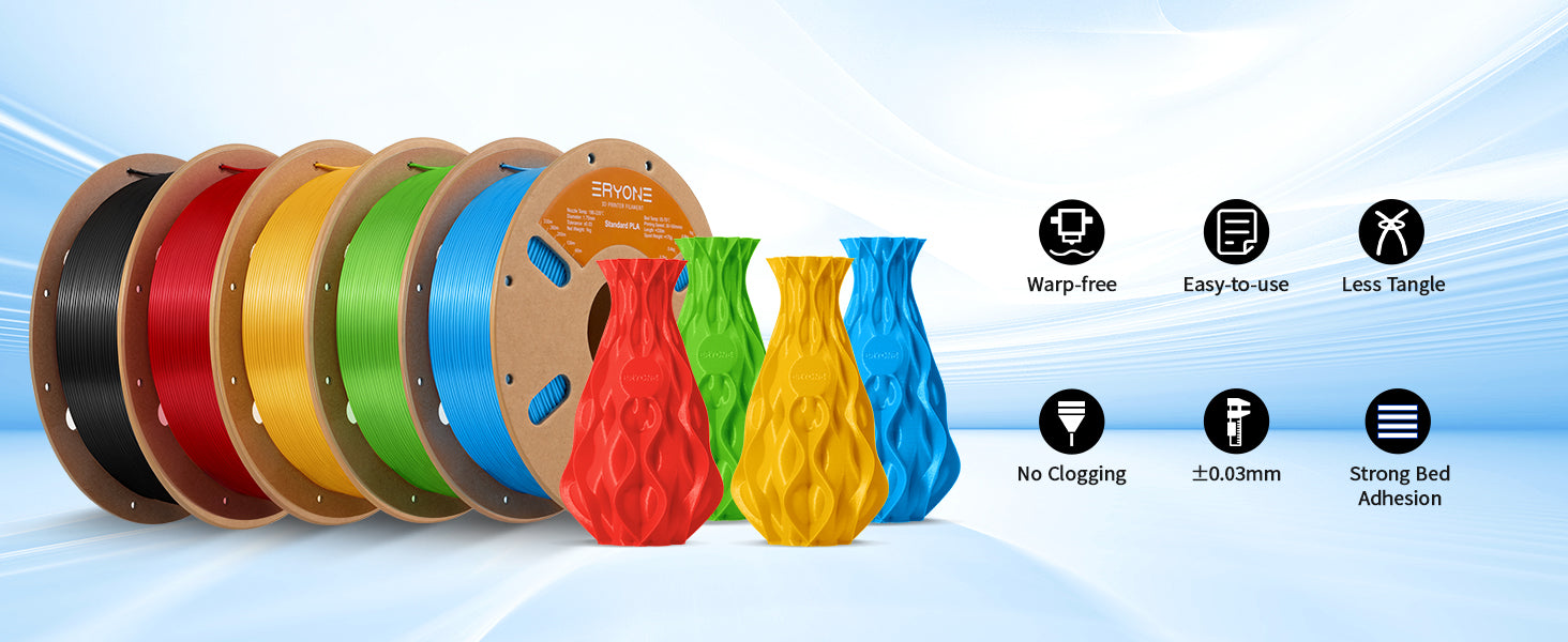 ERYONE PLA Filament has the advantages of easy printing, low shrinkage, and excellent layer bonding.
