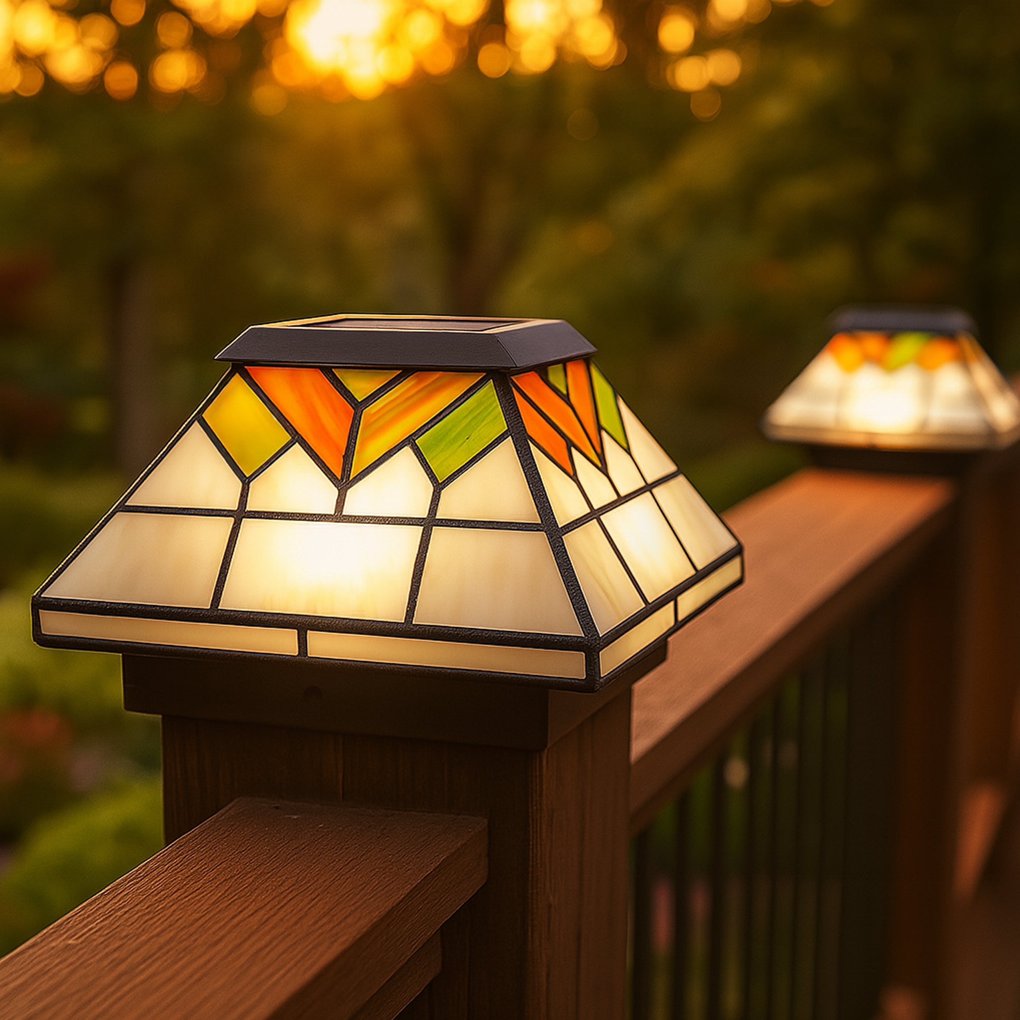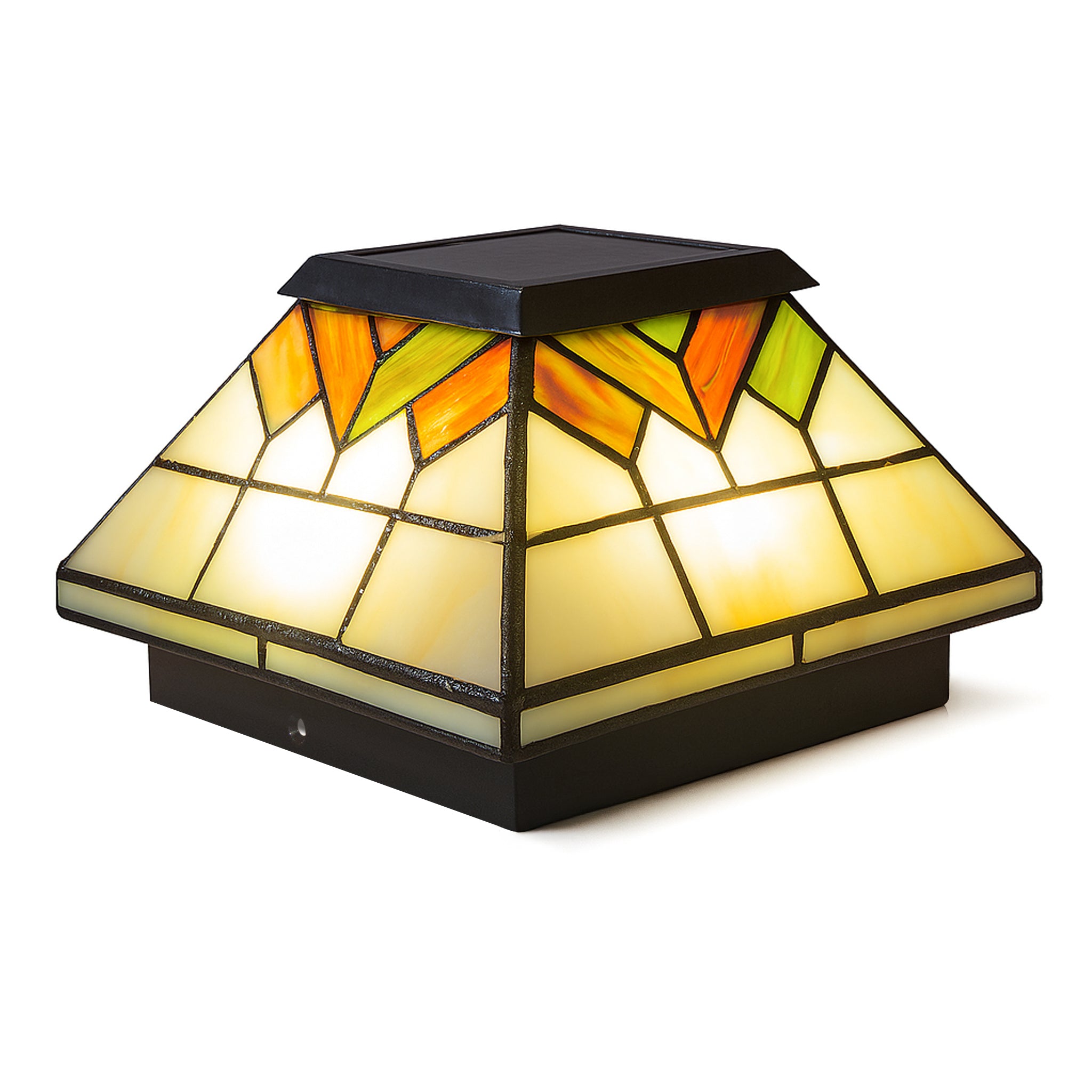 The stylishly graceful Wellington Solar Post Cap will add a distinct charm to your home. It is designed using four high-output LED's to illuminate the beautiful hand-crafted stained glass and the surrounding area. Will fit over a 5"x5", 4"x4", or 3.5"x3.5" post.