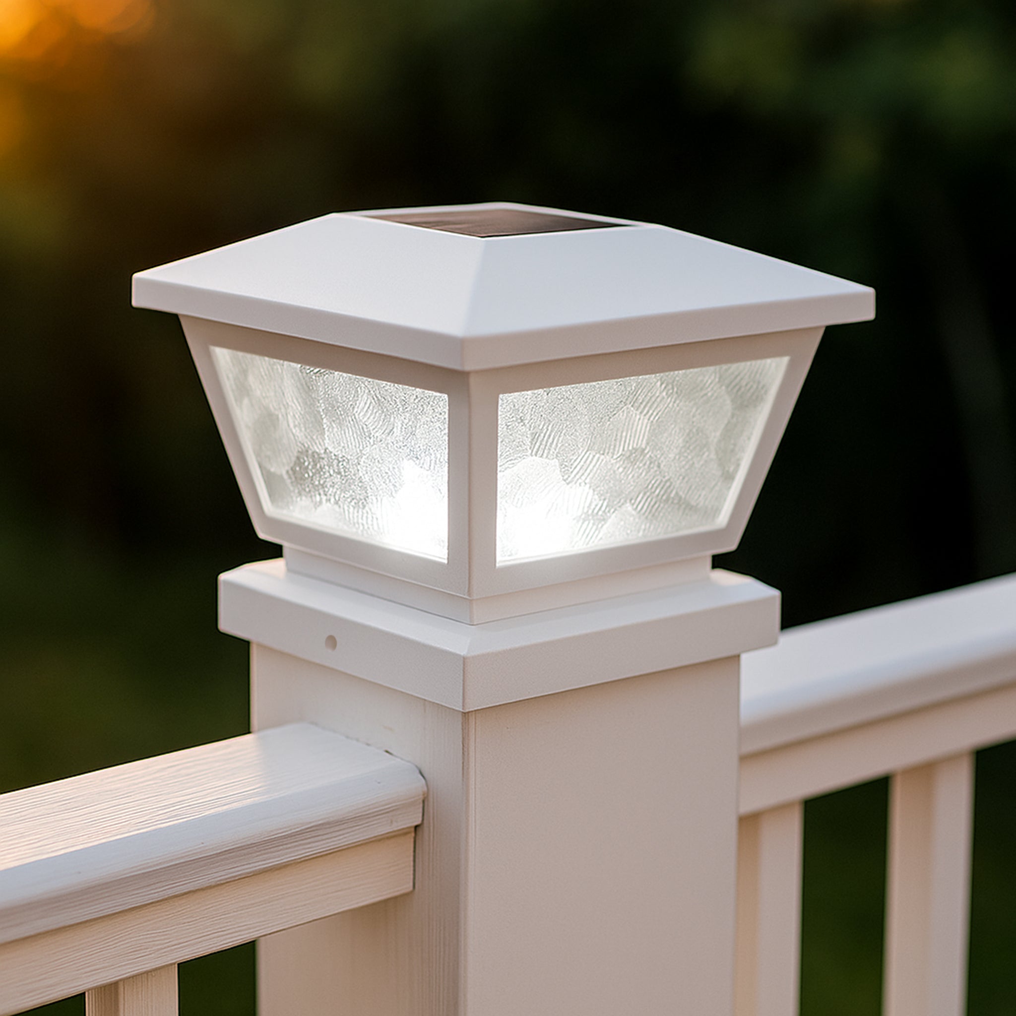 100100w3.5" x 3.5"3.5"x3.5" collection3.5by3.54" x 4"4"x4"4by45" x 5"5"x5" collection5by5ABSABS (Plastic)Actual 3.5" x 3.5" (4 x 4 Nominal)Actual 4" x 4"Actual 5" x 5"Cool Brilliant White LightDeck & Wall LightFairmontfsfs100GlassPebbled GlassSolar Post CapSolar Post CapsWhite