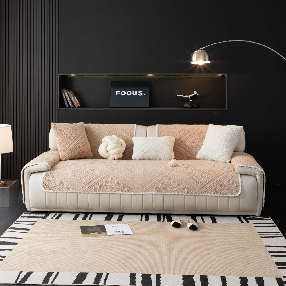 All Season Nordic Style Carved Plush Decorative Non-Slip Outdoor Couch Cover