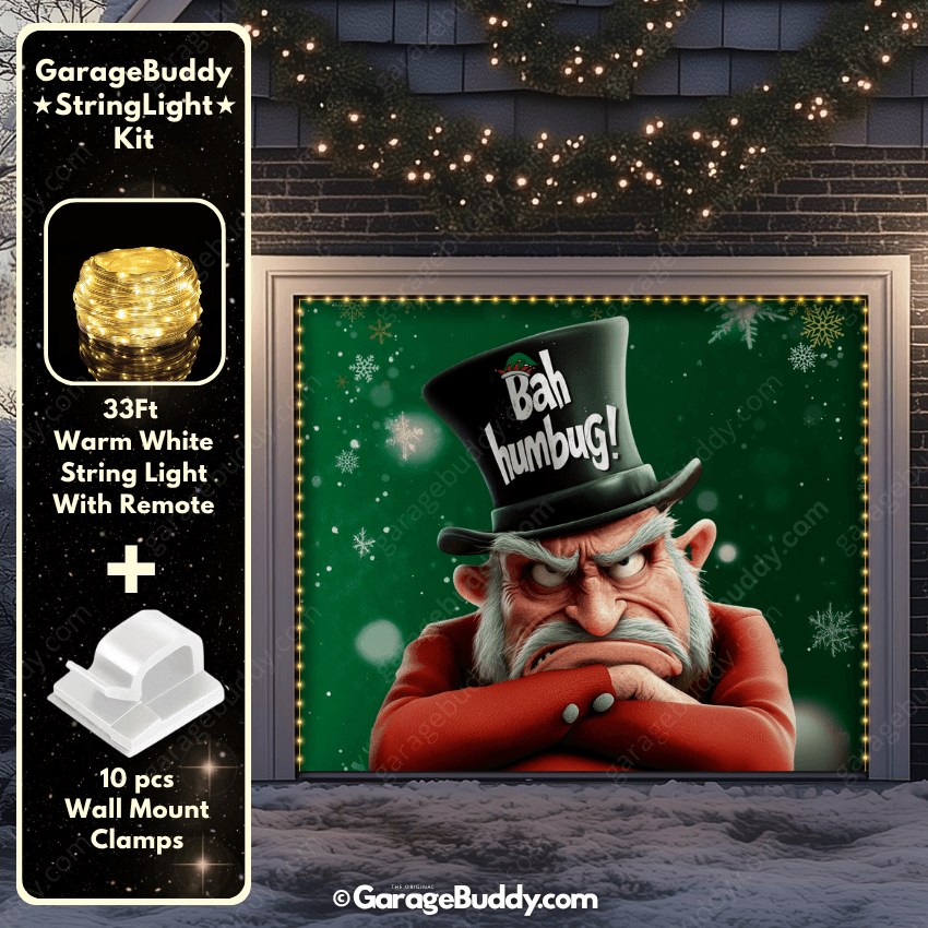 Skip the cheer and embrace the grump with this scowling, top-hat-wearing grouch—perfect for anyone not on Santa’s “Nice” list! Who needs jolly? This hilarious Bah Humbug Christmas garage door cover adds just the right amount of grumble to keep your holiday season balanced. It’s a quirky twist on traditional Christmas decoration ideas and a playful Holiday Garage Door Cover that’s sure to make your home stand out. 😆