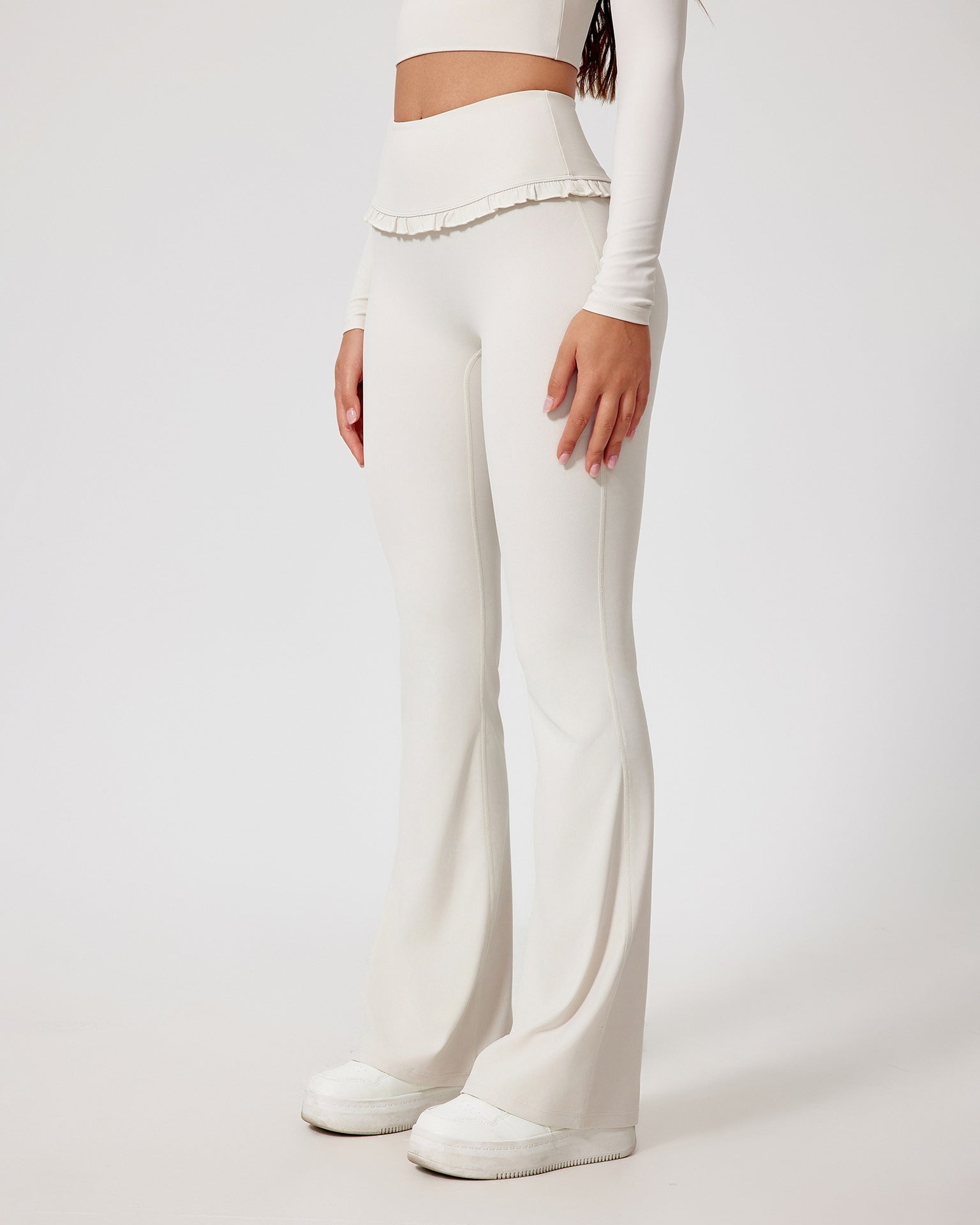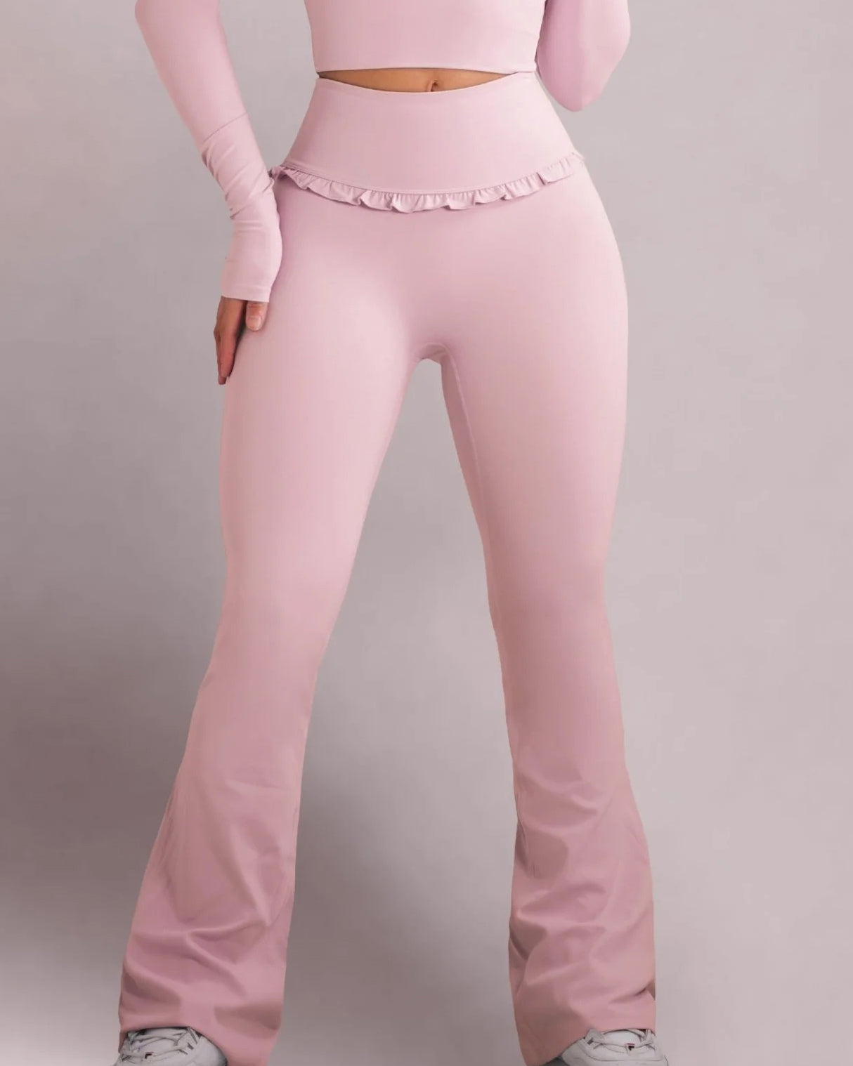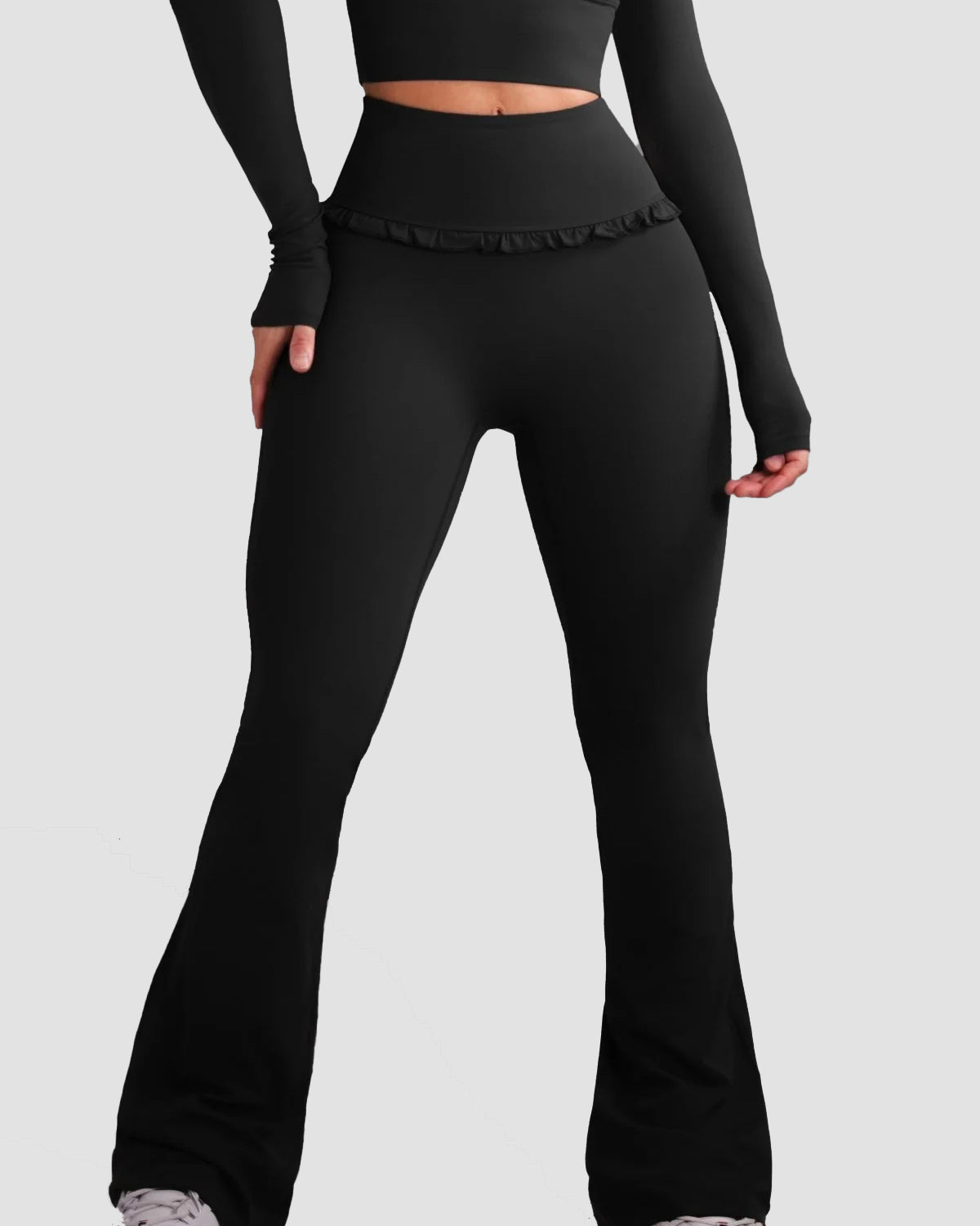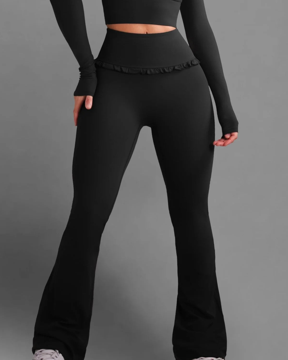 • High-waisted flare design for a long-leg, ballet-inspired silhouette