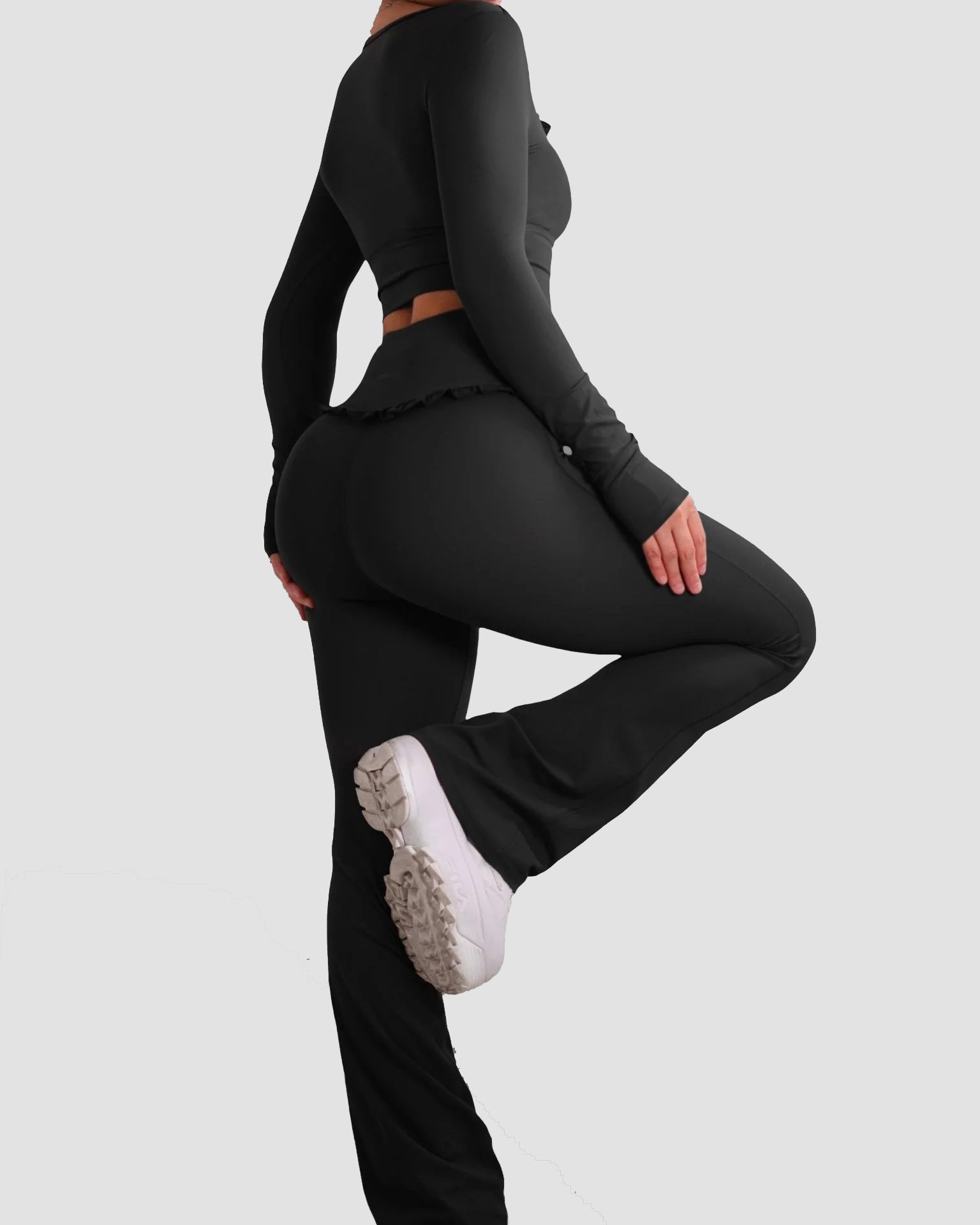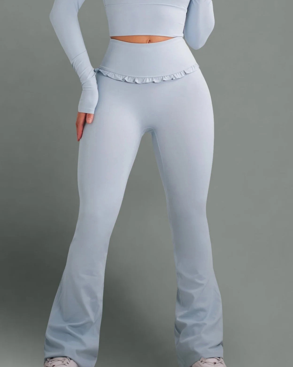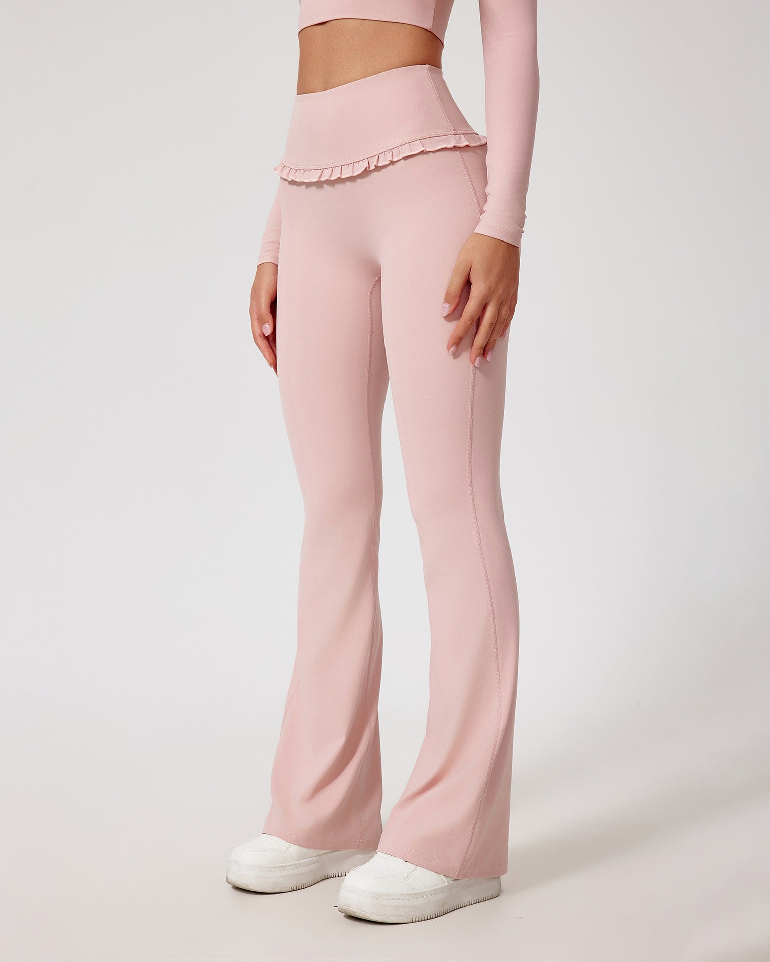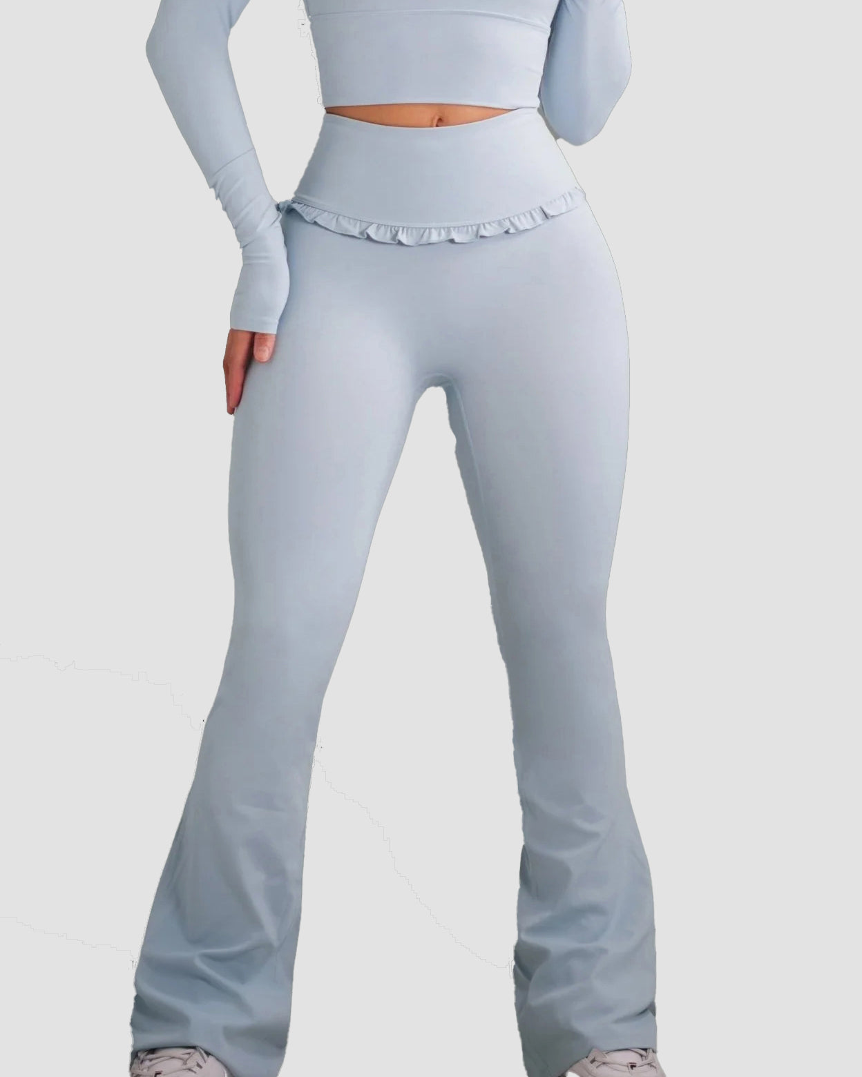 • High-waisted flare design for a long-leg, ballet-inspired silhouette