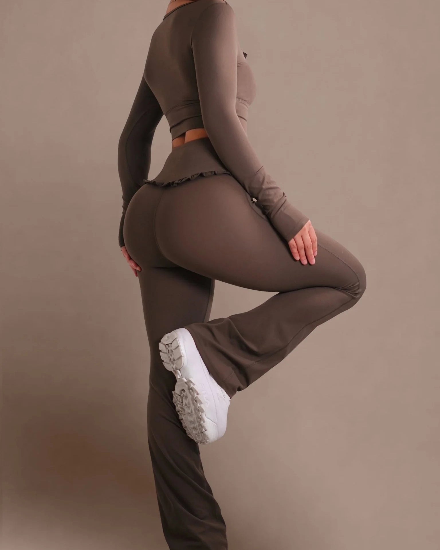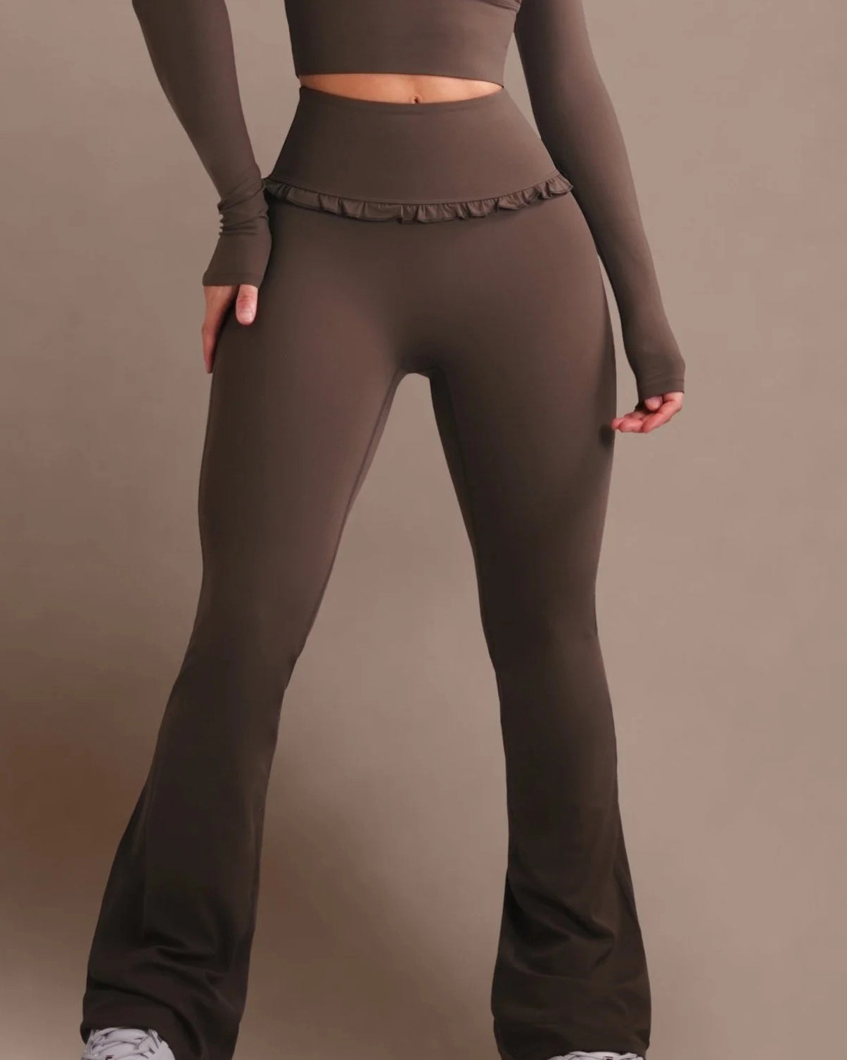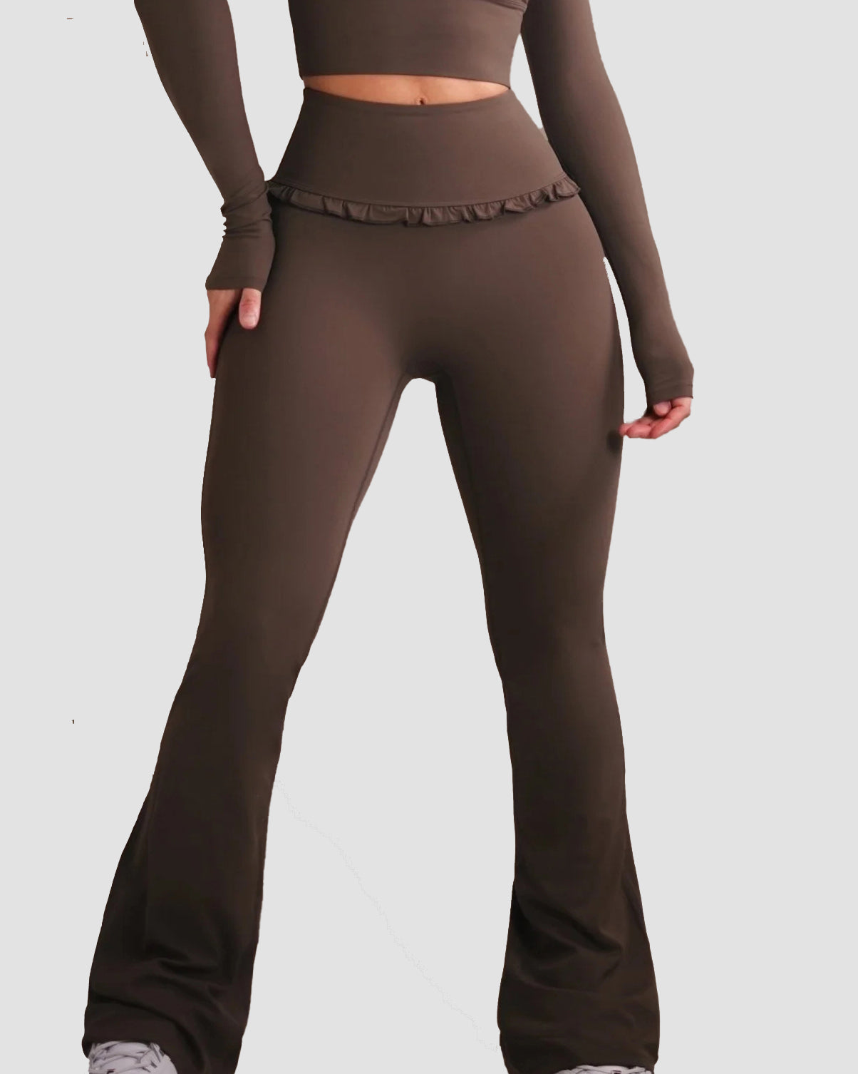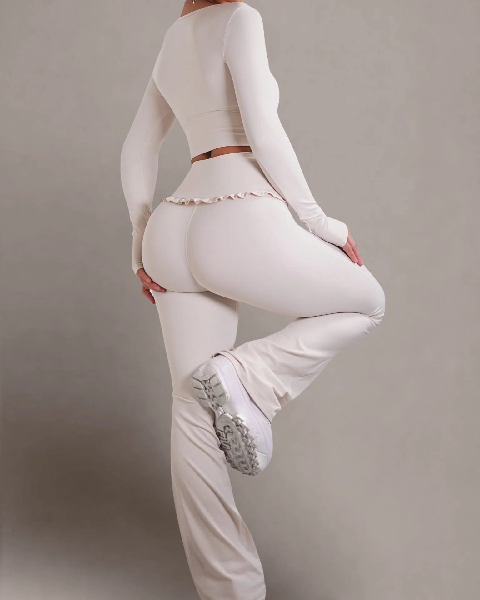 • High-waisted flare design for a long-leg, ballet-inspired silhouette