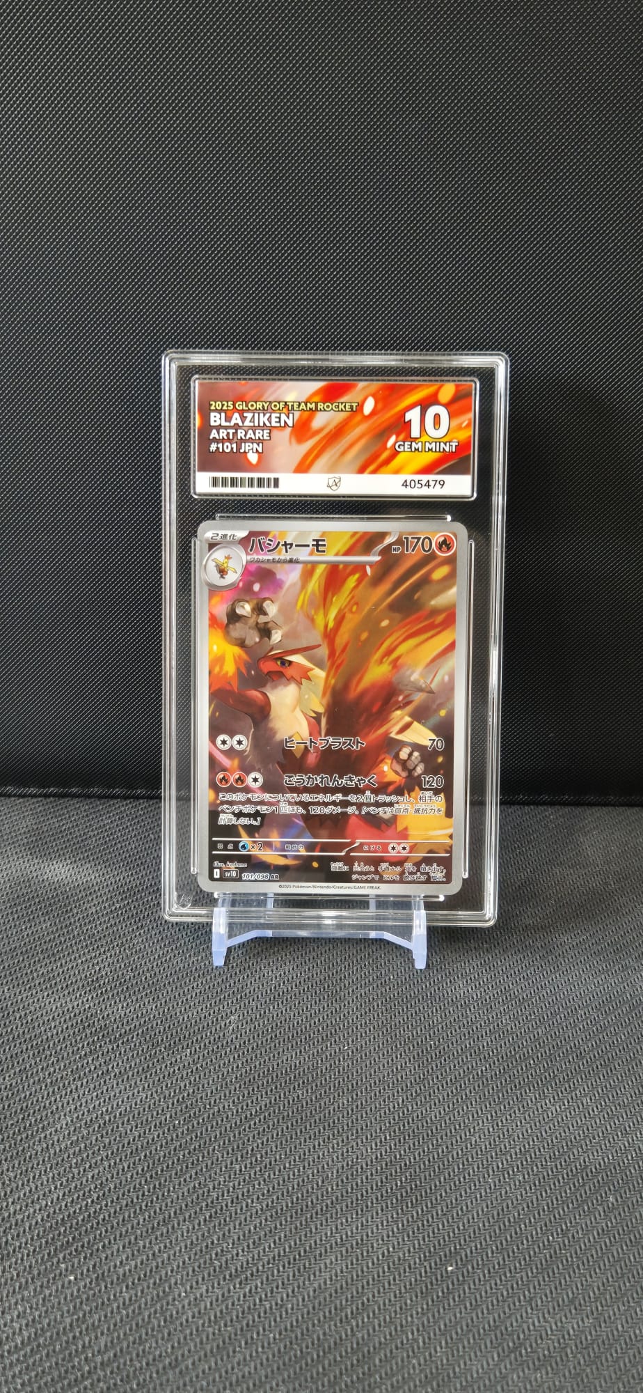 The Blaziken AR 101/098 SV10 Glory of Team Rocket Japanese ACE 10 is priced at $40.00. Free shipping is available on orders over $49.