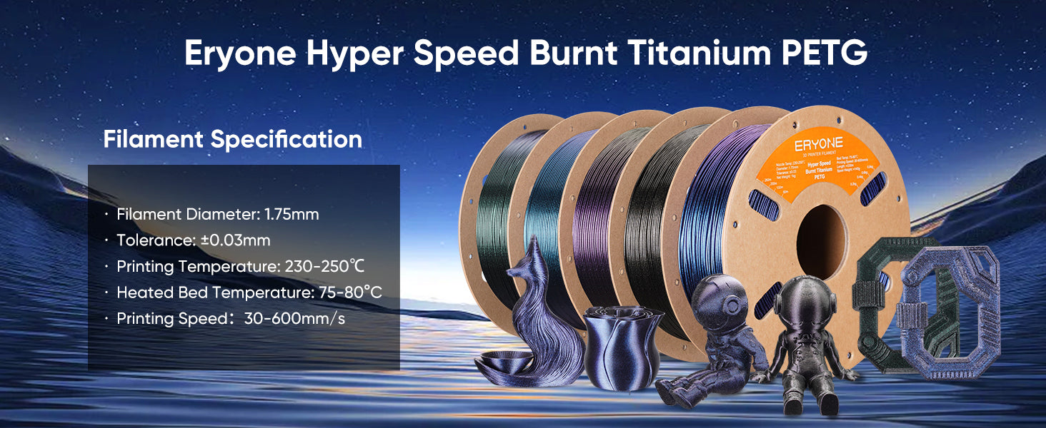 Eryone High Speed Burnt Titanium PETG 3D Printing Filament is a material that