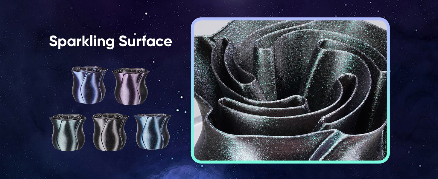 the finished products display an iridescent gradient under different viewing angles, adding a