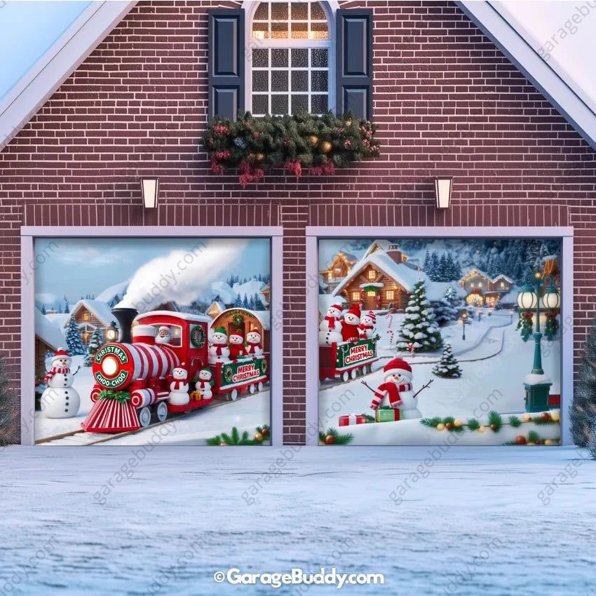 Introducing the most cheerful addition to your home’s festive look — the Christmas Choo-Choo Garage Door Cover! 🎄🚪