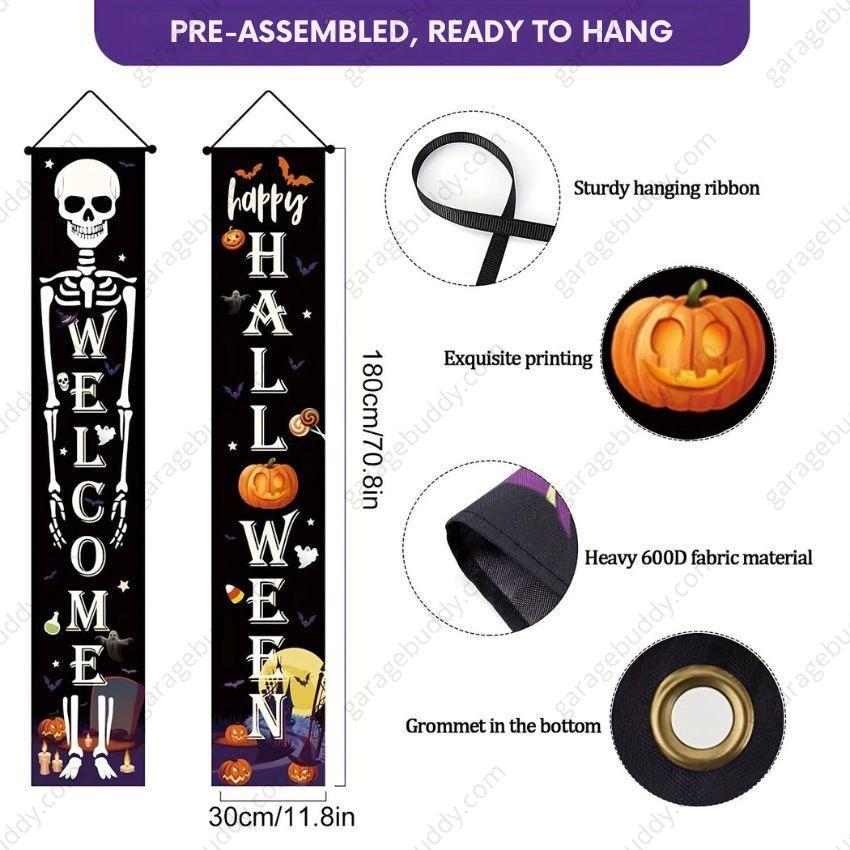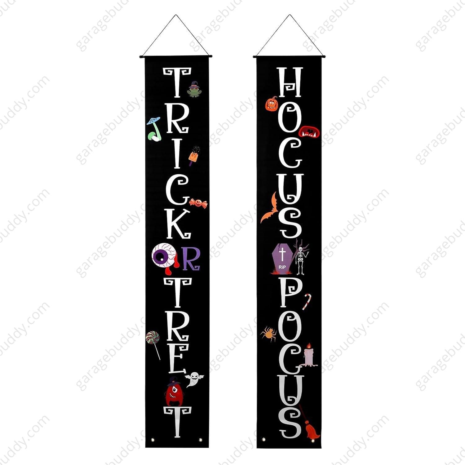 The GarageBuddy Halloween Porch Signs is available in the following options: Happy Halloween- Skeleton, Welcome Witches, Trick Or Treat- Hocus Pocus, Happy Halloween-Trick or Treat, Happy Halloween (New), Trick or Treat- Skeleton. Check the product page for current stock availability.