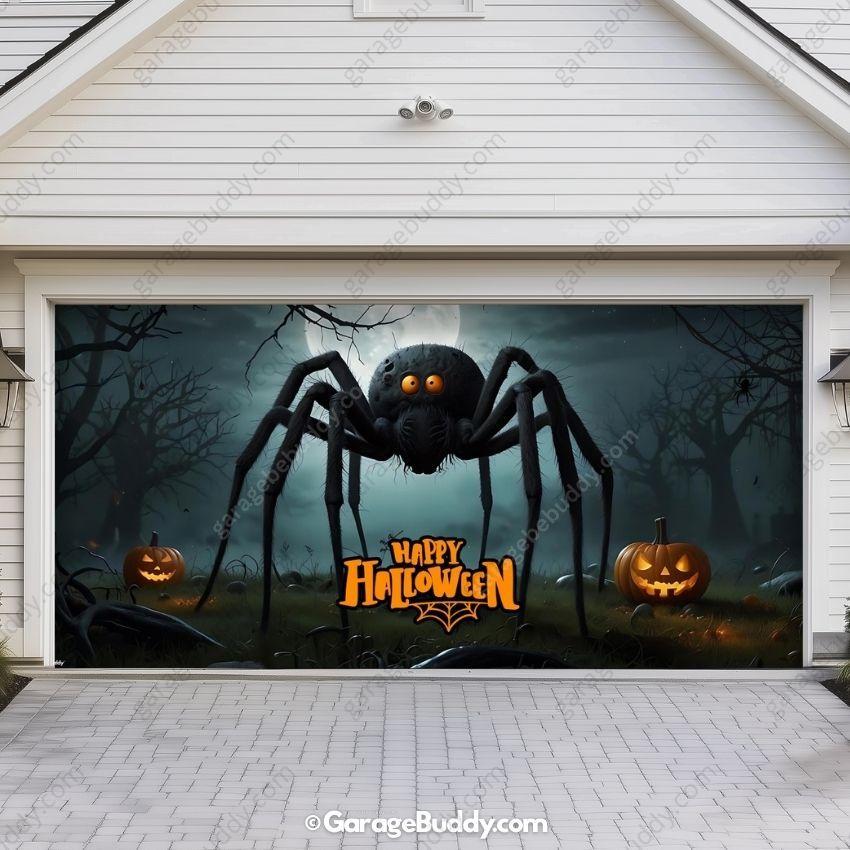 Featuring a colossal werewolf growling menacingly in a dark, shadowy forest, this Giant Spider Halloween garage door cover instantly transforms your home into a bone-chilling spectacle. A ghostly full moon bathes the scene in eerie light, amplifying the terror and turning your garage into a nightmare that will captivate—and terrify—every onlooker. Perfect for anyone hunting for creepy garage door decoration ideas this Halloween.