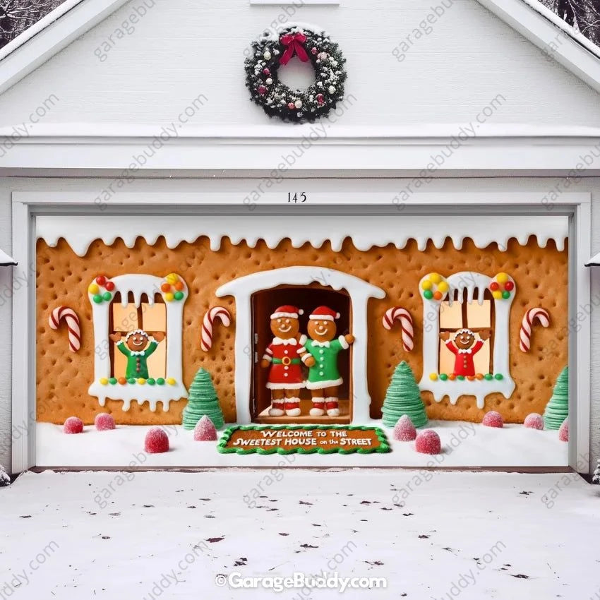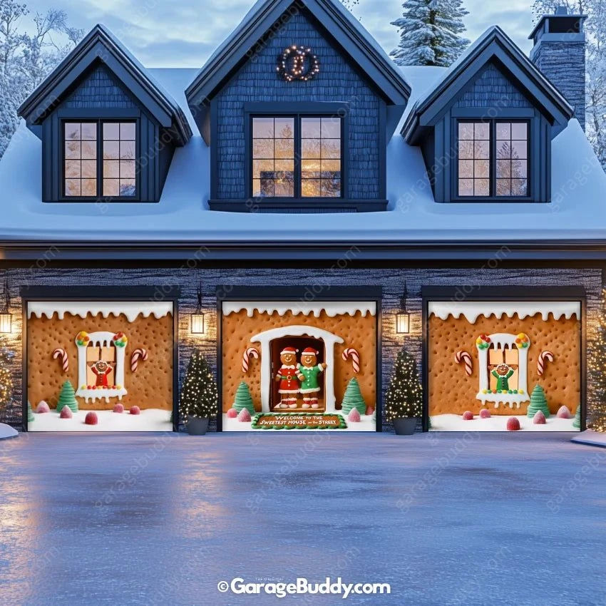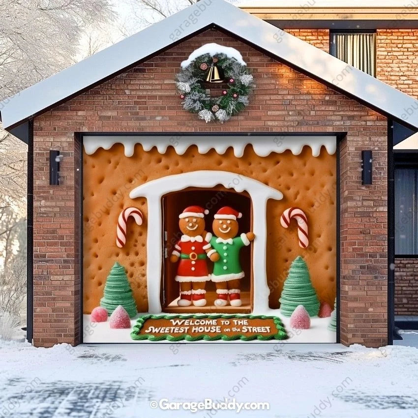 Introducing the Coolest Thing Since Reindeer on Roofs: 'Gingerbread Family Christmas Garage Door Cover!' 🎄🚪