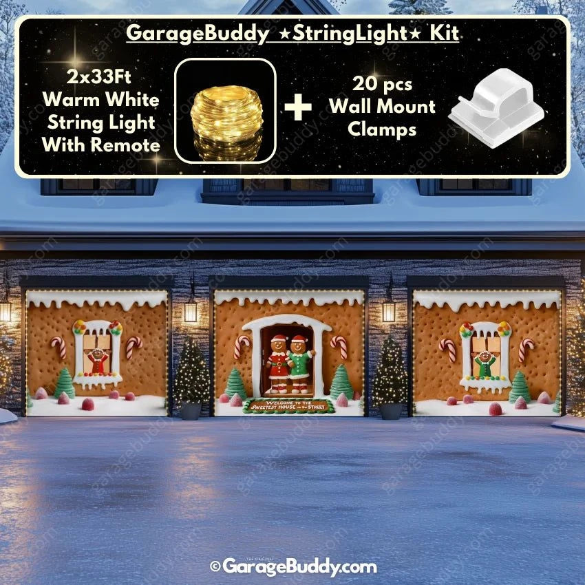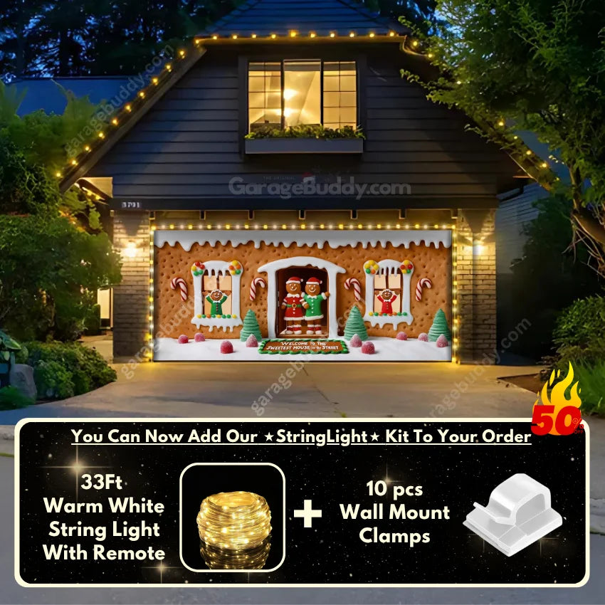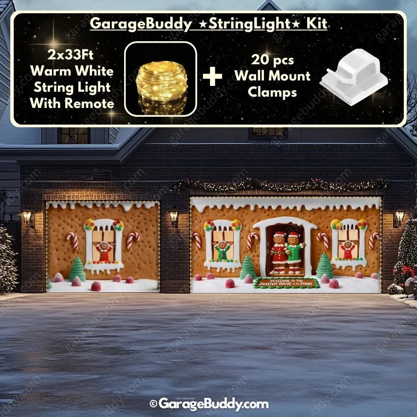 You now have the option to add the GarageBuddy string light kit to your order at 50% off and turn your garage into a true showstopper. Pair your festive garage door cover with warm, glowing outdoor Christmas lights for the ultimate North Pole effect.