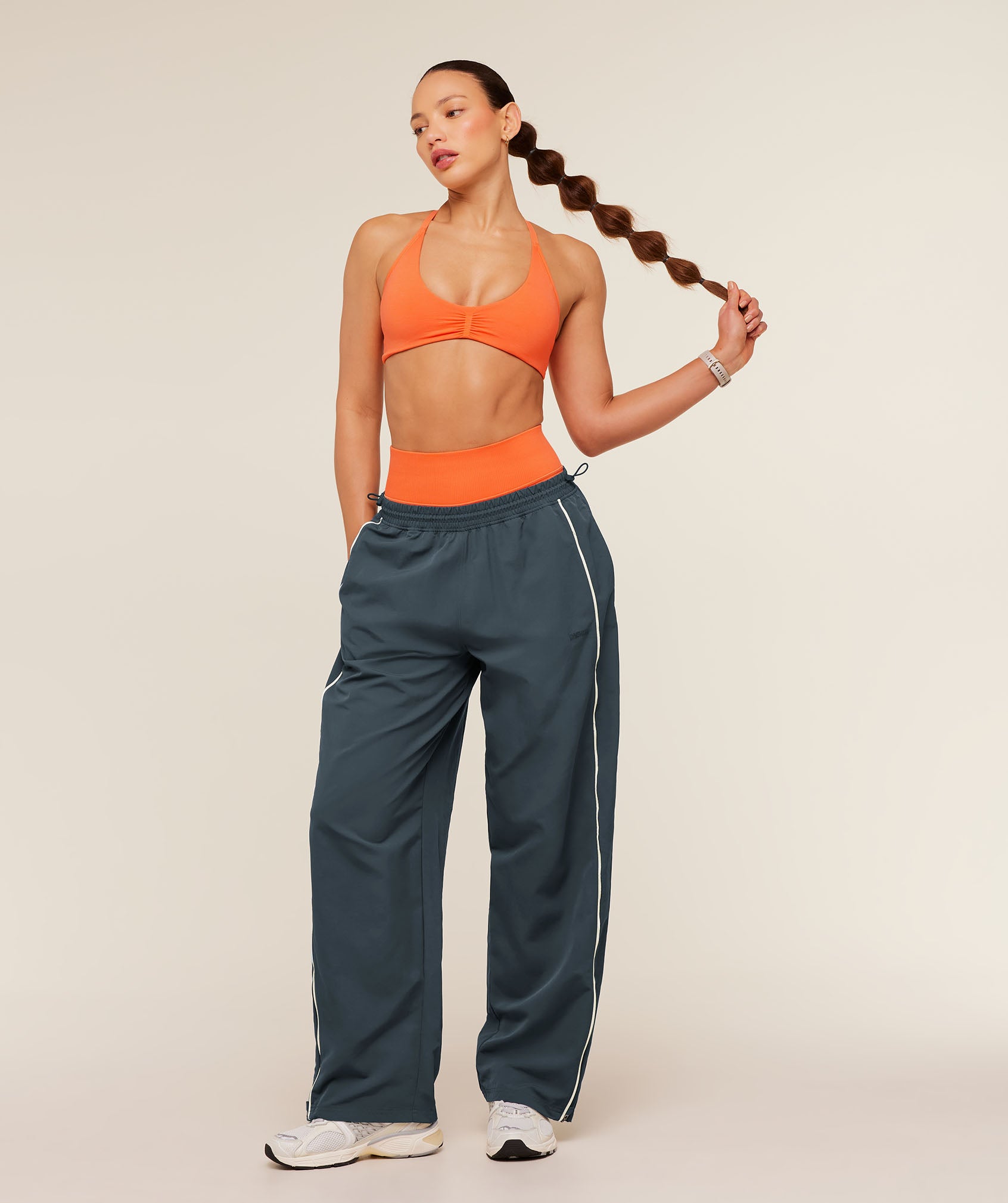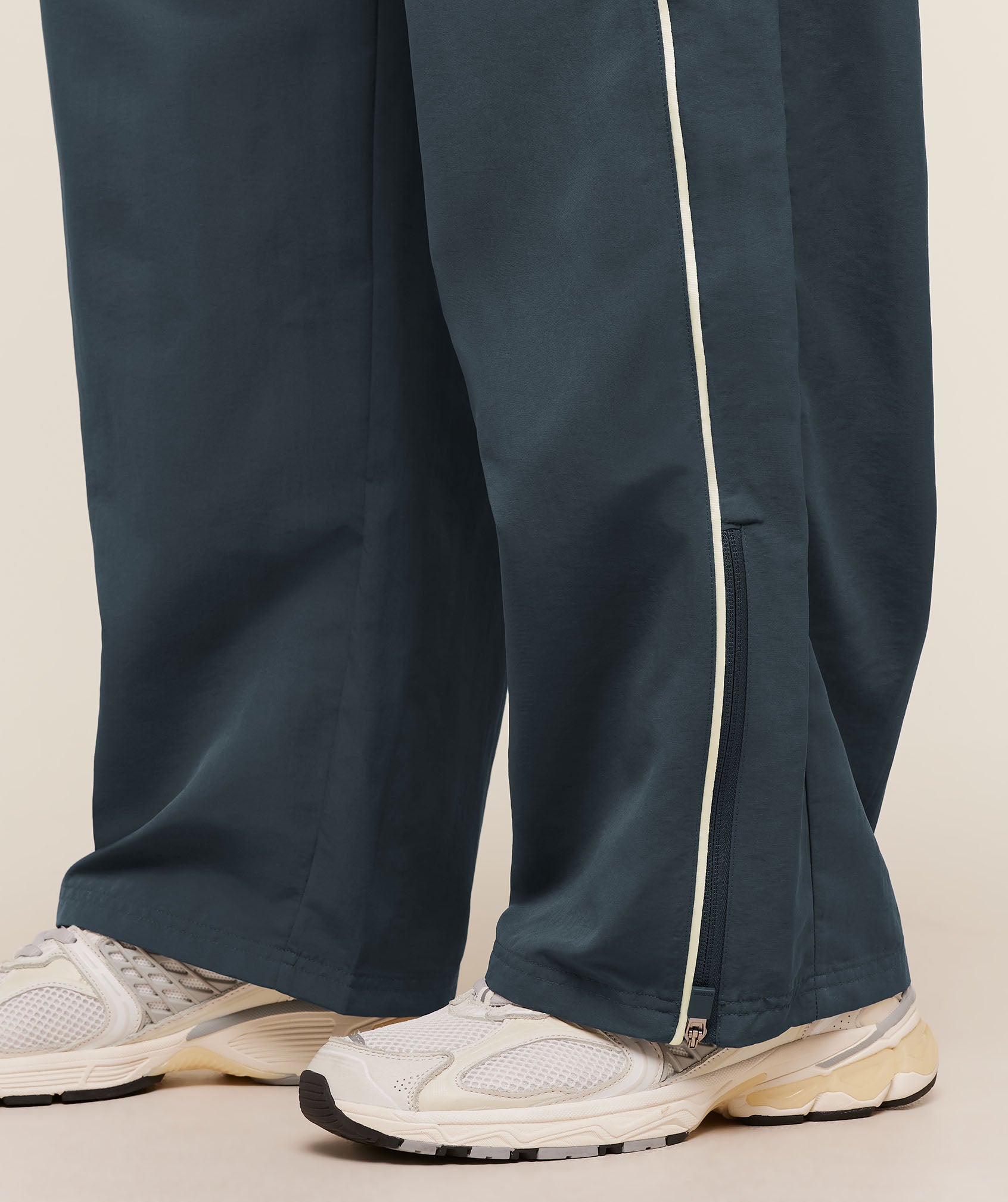 - Zips on the ankles to create a wide leg style when they’re open