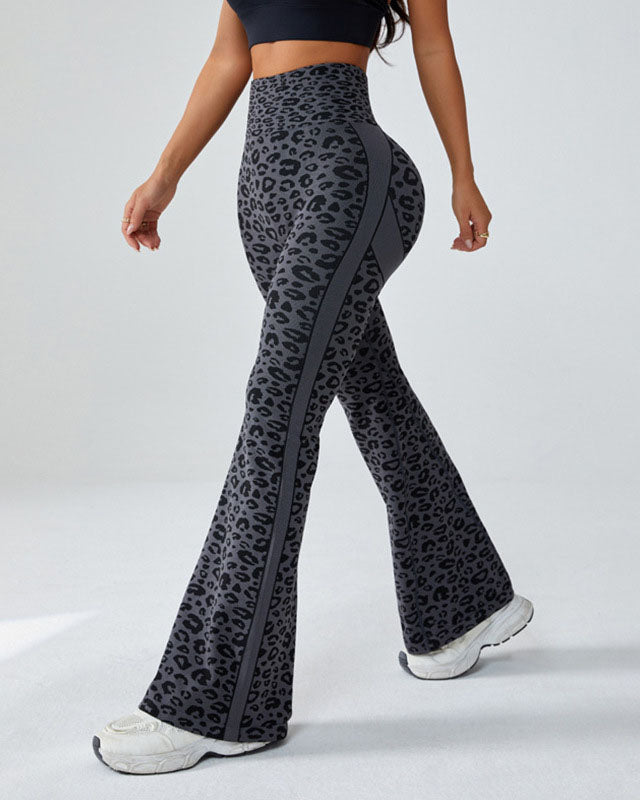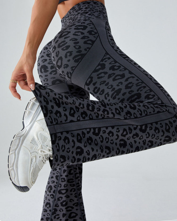 High-Waisted Leopard Print Fitness Yoga Flared Hip-Lifting Pants