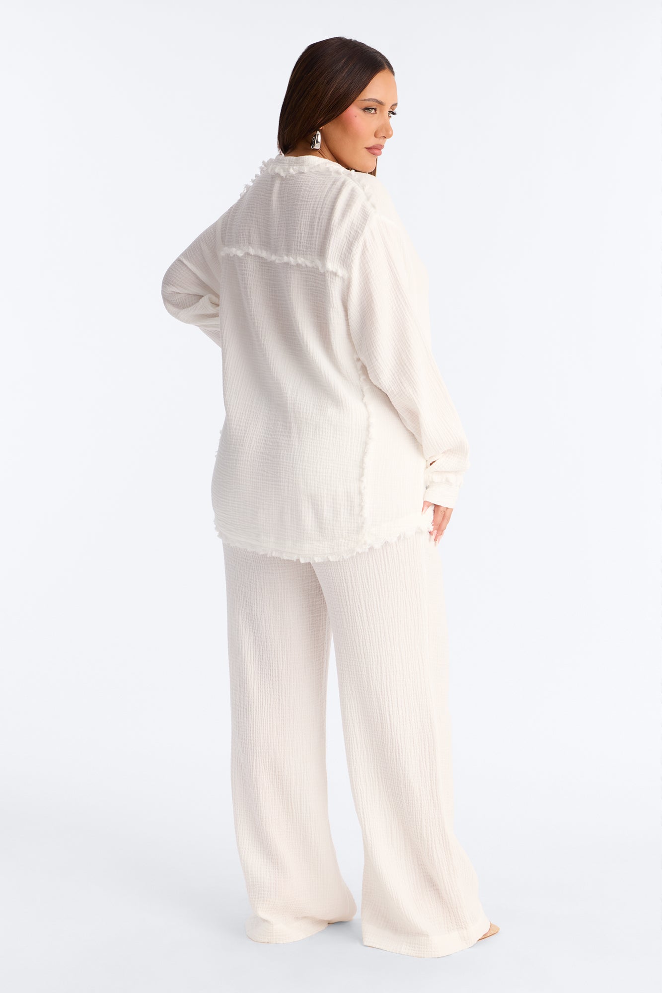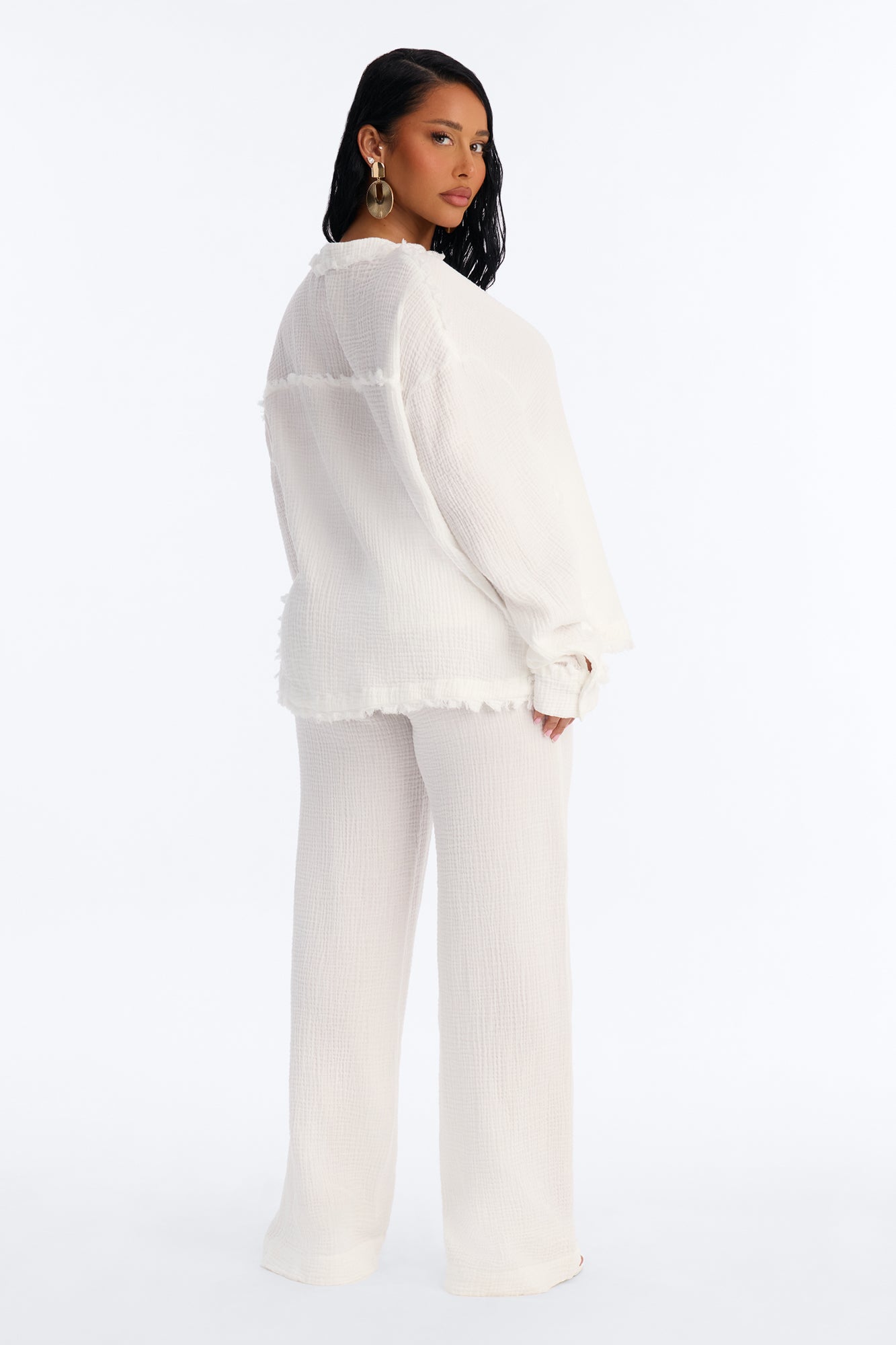 Isabella Gauze Wide Leg Pant Set - White