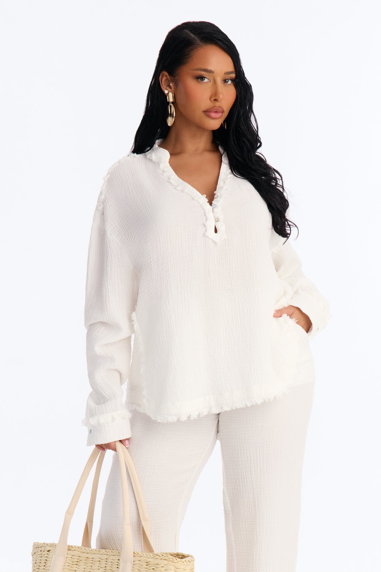 All Promobottom_length:Regular Pantsbottom_length_es:Pantalones Regularesbottom_style:Wide Legbottom_style_es:Pierna Anchacategory:Matching Setscategory_es:Conjuntos Coordinadoscolor:Whitecolor_fam:WhiteColorFam-Whitedefault_collection_id:181231492fabric:Gauzefabric_es:Gasaneckline:Collarneckline_es:Cuellooccasion:Vacationoccasion_es:Vacacionesprint:Solidprint_es:Estampado Sólidopromo:bogodjmrprop65-falsepublished_yesterdayREGPRICEset_type:Pant Setsset_type_es:Conjuntos De Pantalonsleeve:Long Sleevesleeve_es:Manga Largatop_length:Regulartop_length_es:Regulartop_style:Blousetop_style:Shirts & Blousestop_style_es:Blusastrend:Basicstrend_es:BasicosWOMENSYGroup_B23133