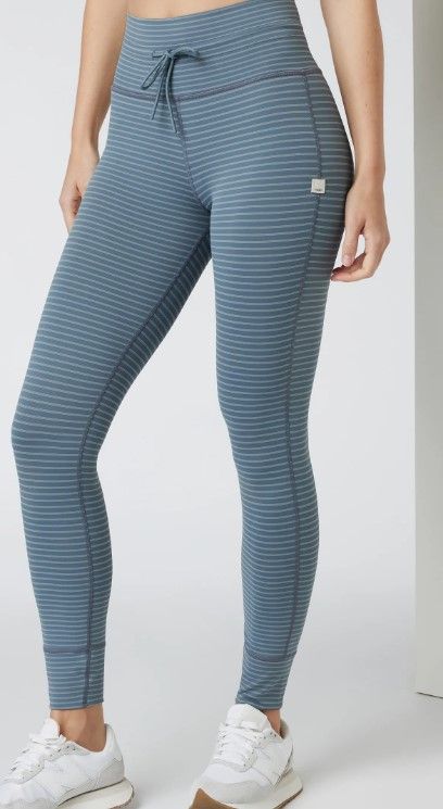 The Vuori Stripe Daily Legging is available in the following options: XS / Smoke Blue Stripe, S / Smoke Blue Stripe, M / Smoke Blue Stripe, L / Smoke Blue Stripe, XL / Smoke Blue Stripe. Check the product page for current stock availability.