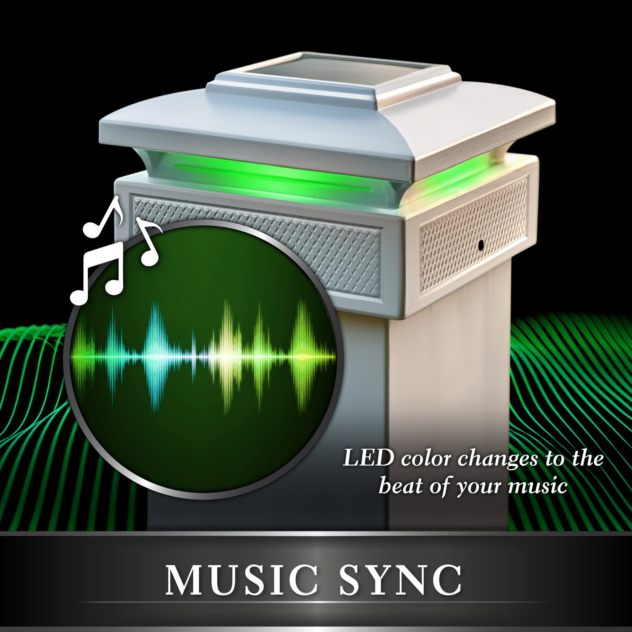 Control when and how long you want the light to be active, change the mood and theme with the dimmer control or color wheel selection with the option of up to 16 million color variations! Make a statement by choosing the music feature and watch your solar lights shine to the beat of your favorite tune! This unequivocally smart Classy Caps Lumineer solar outdoor post light offers convenience, ease and of course artistry to your outdoor setting!