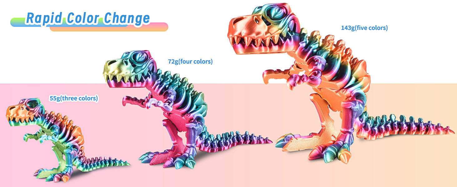 A:The length of the rainbow PLA in each color is constant, and the customer calculates the length or weight of filaments needed to print the model according to how many colors  customers want to show when slicing.