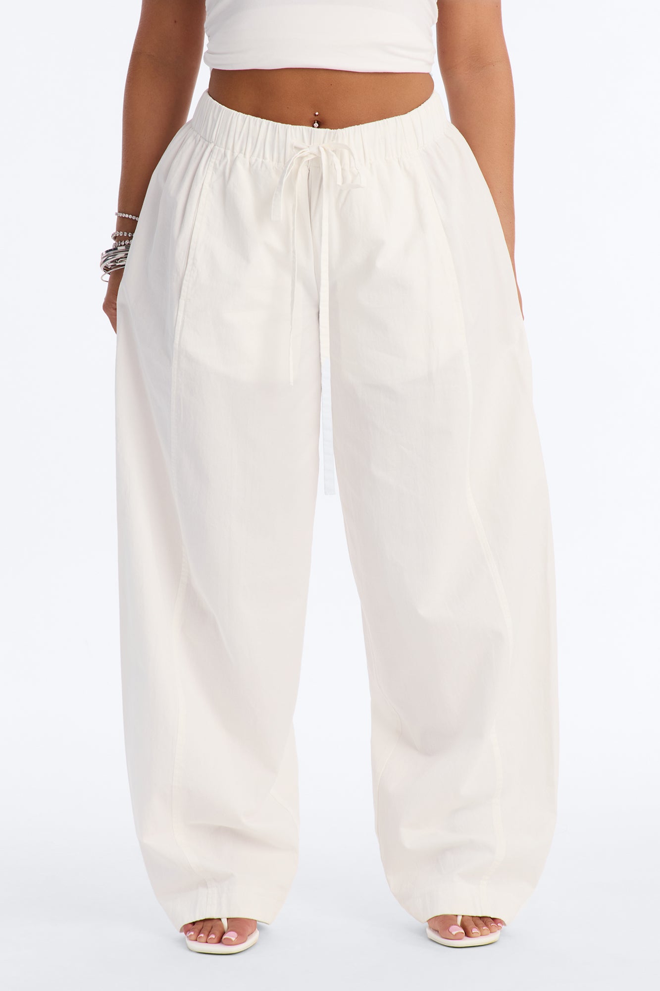 Maggie Low Rise Drawstring Wide Leg Pant 32″ - White