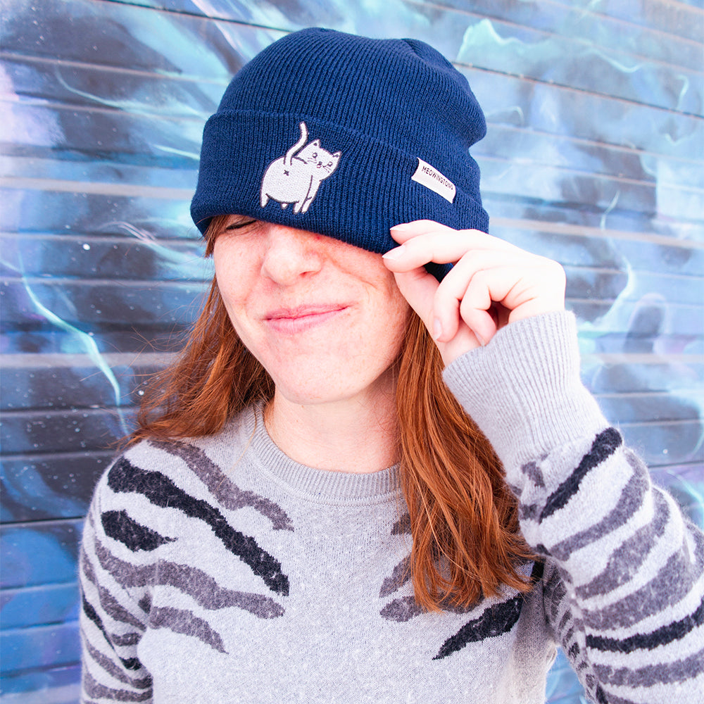 There is no such thing as a bad hair day with a beanie on your noggin! And Milton is here to ensure you're looking and feline fine no matter the reason (or the season). The fold-over cuff features a fully embroidered Milton The Cat showing his cat butt to the world (as any cat parent knows cats are wont to do).