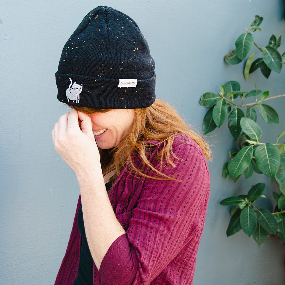 You’ll have the pick of the litter in choosing from a Navy Blue beanie or Black Color Speckle (for a playful twist on your standard black beanie). Crafted from a blend of super-soft acrylic and polyester, this cat beanie is extra comfy and cozy while guaranteed to hold its shape. It is also the purrfect vegan alternative to wool beanies for those who have wool allergies or sensitive skin! It’s sure to quickly become your favorite beanie.