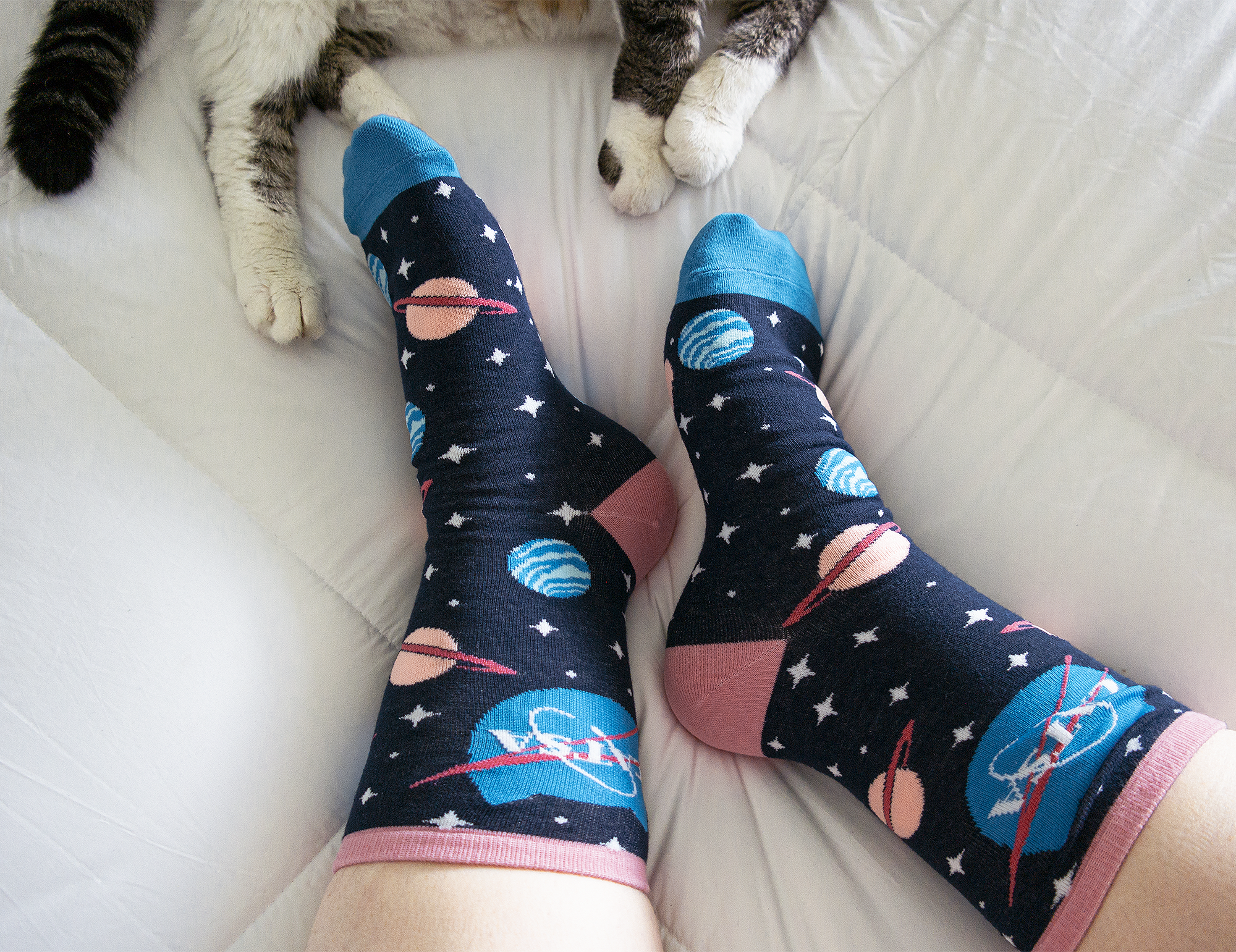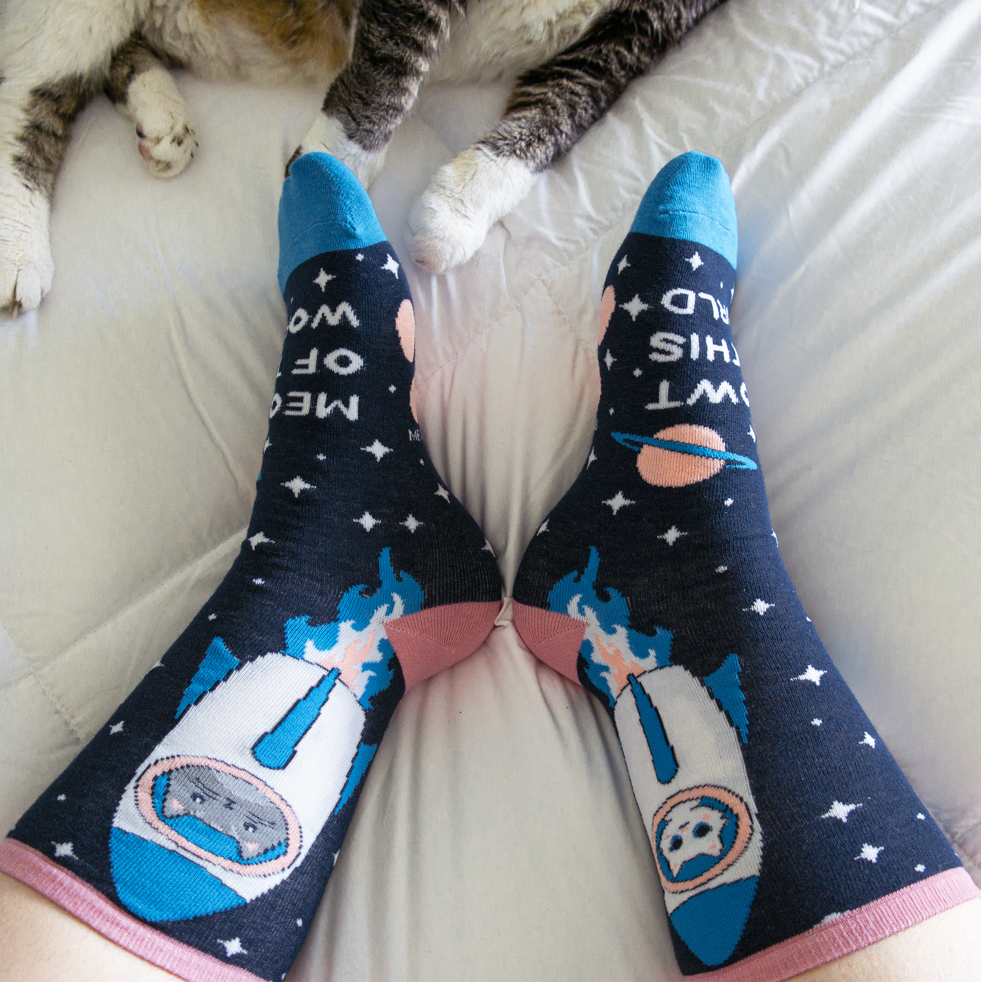 Three space-themed designs allow you the freedom to mix and match to your heart's content while still being purrfectly coordinated. Have no fear of the sock-eating monster (aka your dryer) - if you're missing one of a pair, swap in another to match. Mismatched socks have never been this fun!