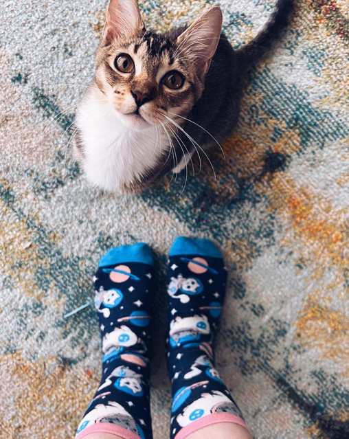 We've reimagined our most popular cat print in this three-pack of cat paw socks, featuring fan favorites Milton the Cat and Millie the Cat exploring the universe as kitty cat astronauts. Seriously, has space travel ever looked so cute? And as a fun bonus, hidden on the sole of each sock is an adorable paw print and toe beans so you can match with your cat.