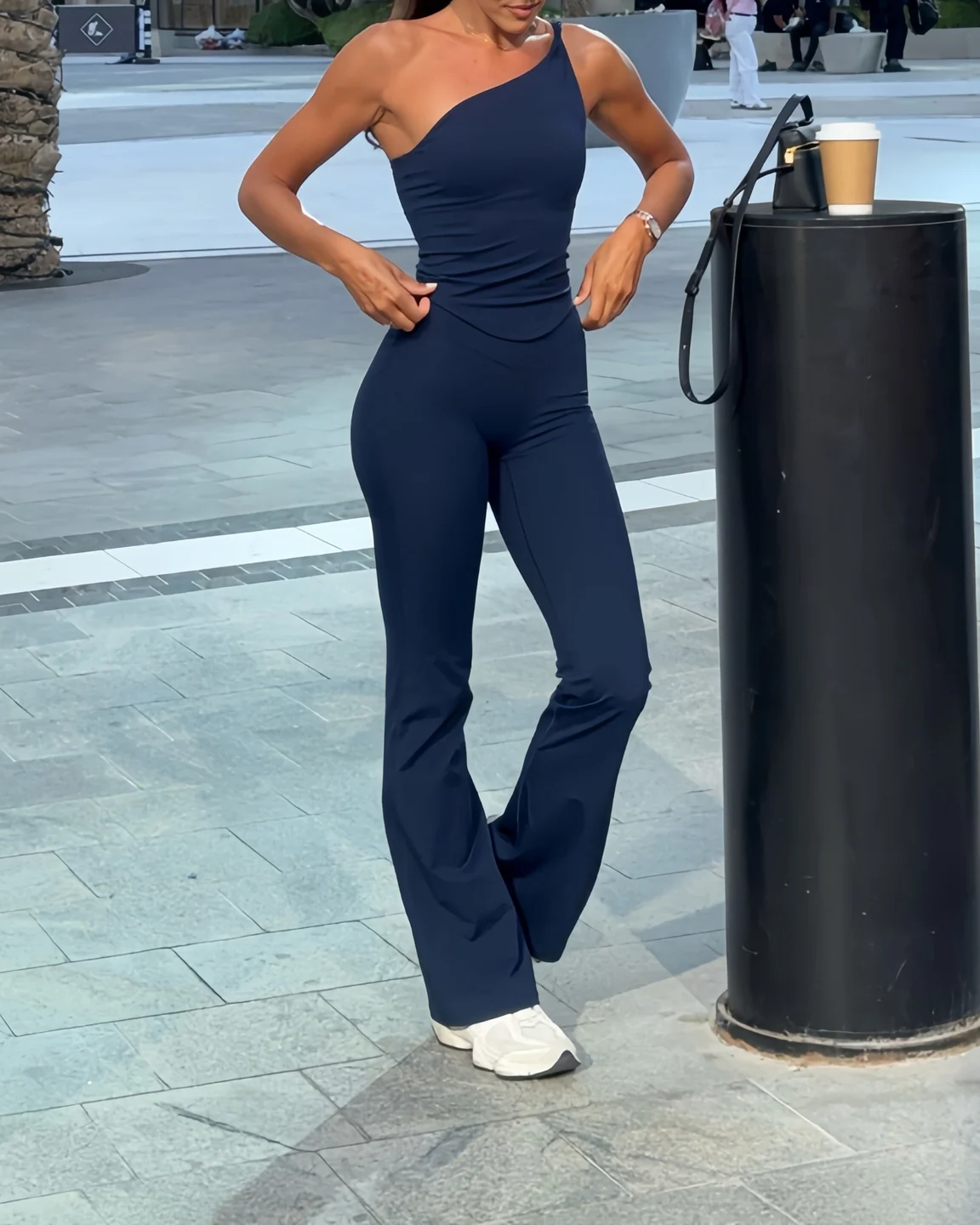 The One-Shoulder Slimming Yoga Fitness Set is available in the following options: White / S, White / M, White / L, White / XL, White / XXL, White / 3XL, Brown / S, Brown / M, Brown / L, Brown / XL, Brown / XXL, Brown / 3XL, Navy / S, Navy / M, Navy / L, Navy / XL, Navy / XXL, Navy / 3XL. Check the product page for current stock availability.
