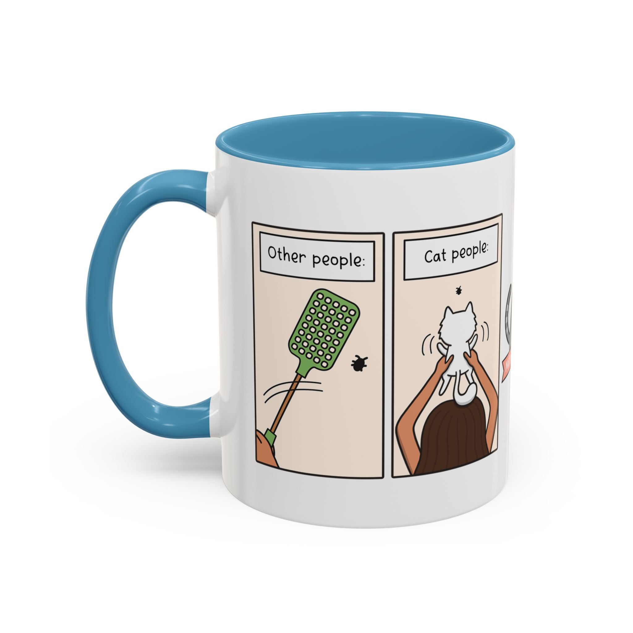 The Other People vs Cat People Comic Coffee Mug is available in the following options: 11oz / Navy, 11oz / Pink, 11oz / Light Blue. Check the product page for current stock availability.