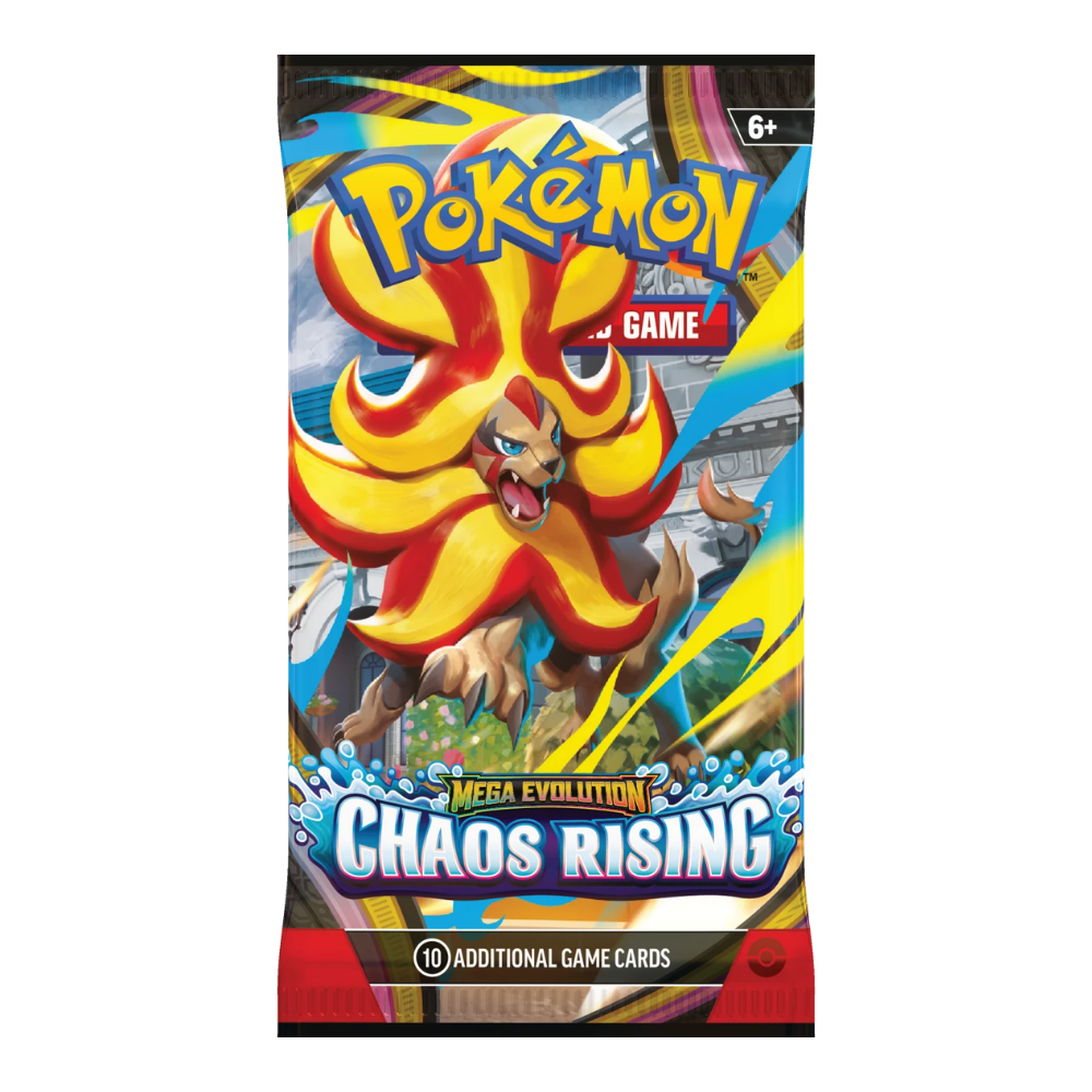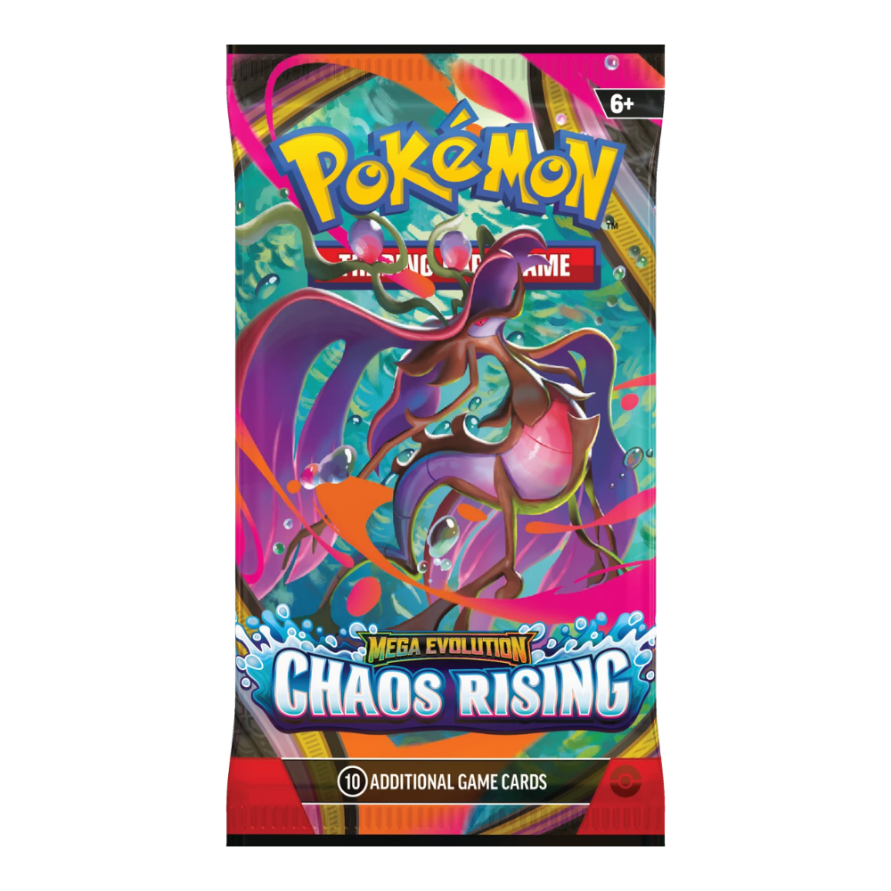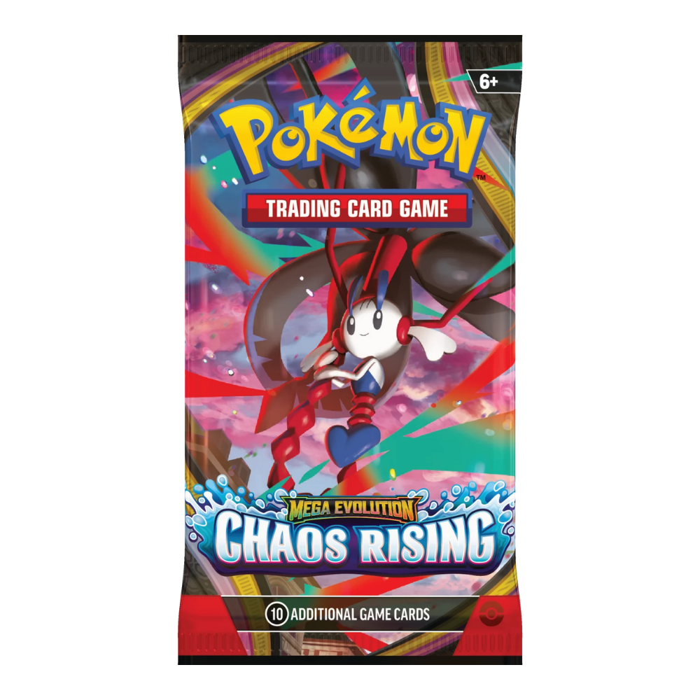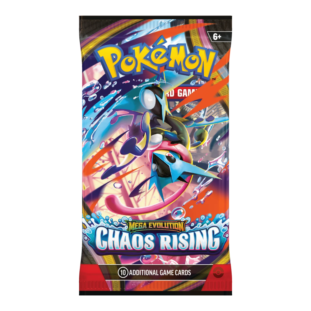 Take On the Challenge of an Eternity! The hustle and bustle of the city turns into havoc as Mega Floette ex brings turmoil to the streets! Filled with courage and determination, Mega Greninja ex gathers other powerful Mega Evolution Pokémon ex, including Mega Pyroar ex and Mega Dragalge ex, to ward off this growing threat. As night falls, danger blossoms in the Pokémon TCG: Mega Evolution—Chaos Rising expansion!