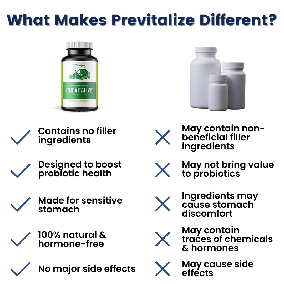 What makes Previtalize better than other prebiotics is its natural blend of unique herbs that helps your gut readily absorb nutrients, reducing gas, bloating and stomach upset.