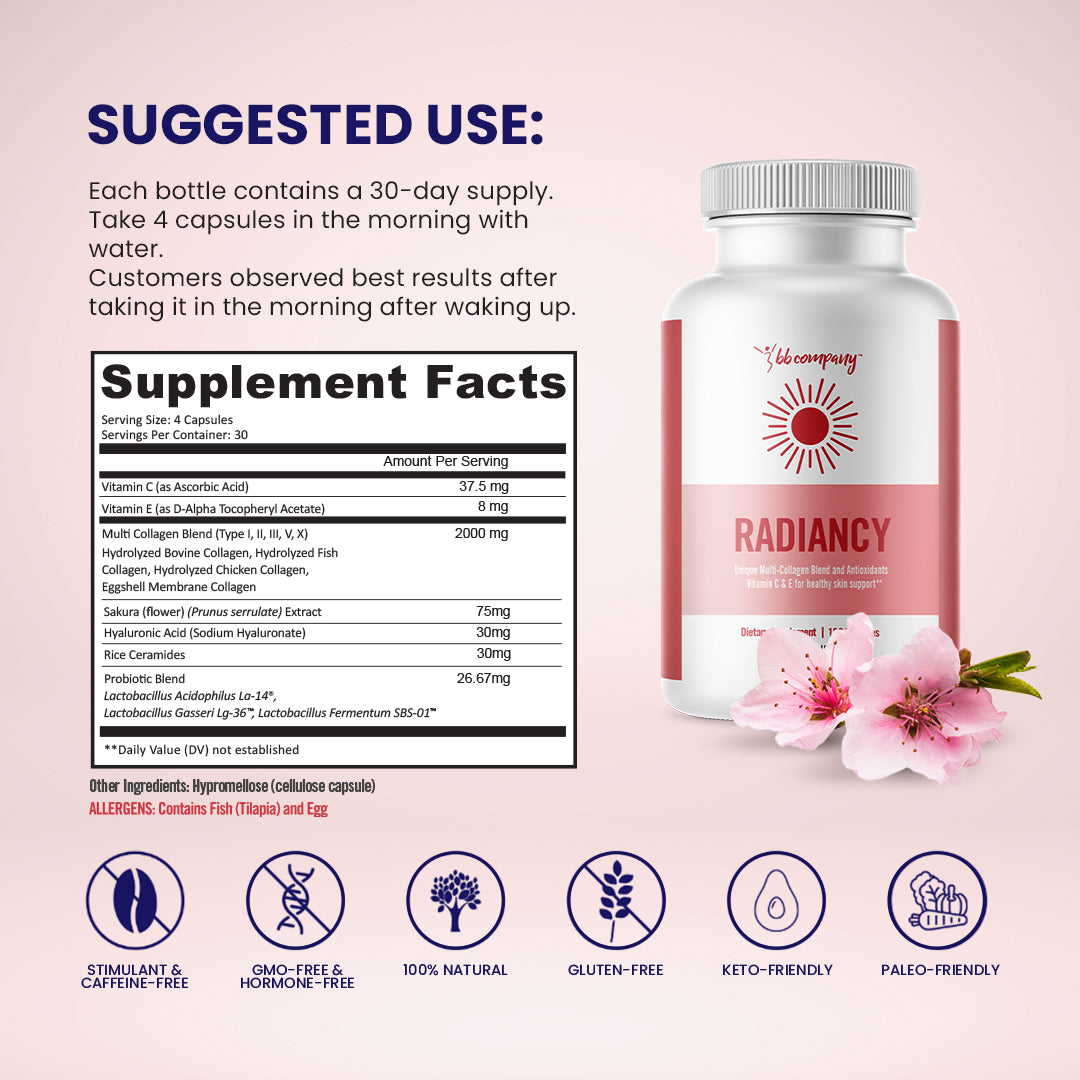 The Radiancy | Vaginal Probiotic & Collagen Blend [LP] is available in the following options: 1 Bottle, 2 Bottles, 3 Bottles. Check the product page for current stock availability.