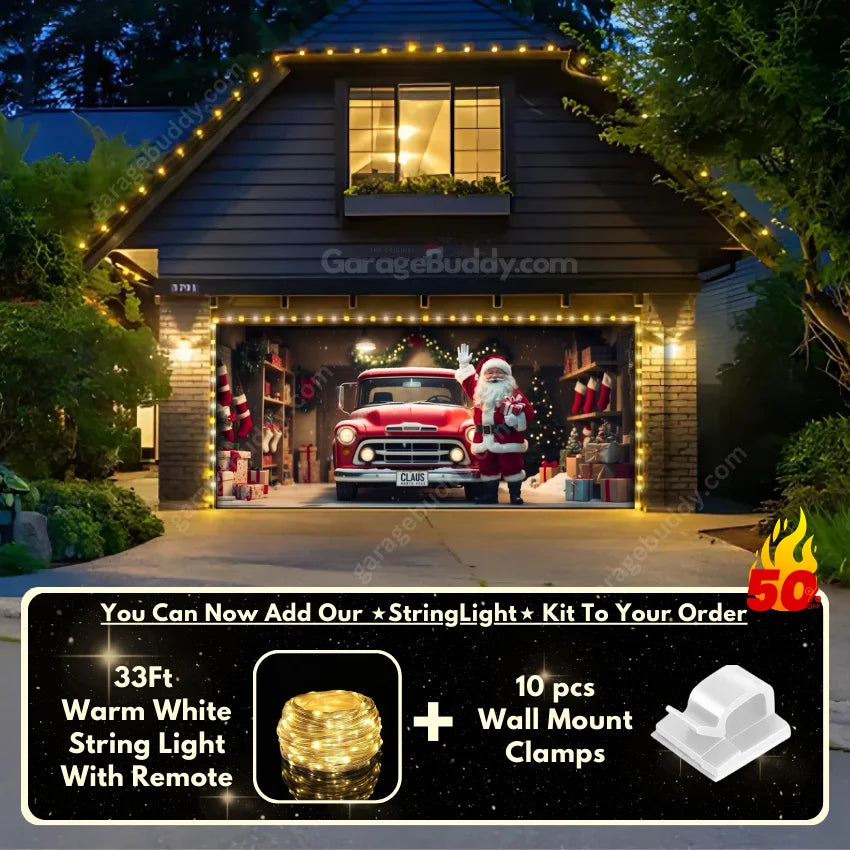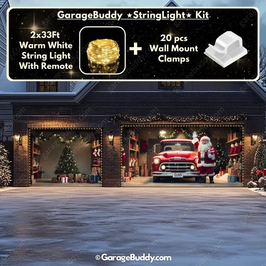 You now have the option to add the GarageBuddy string light kit to your order at 50% off and turn your garage into a true showstopper. Pair Santa’s Garage | Christmas Garage Door Cover with warm, glowing outdoor Christmas lights for the ultimate North Pole effect.