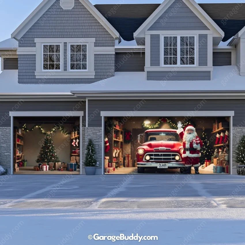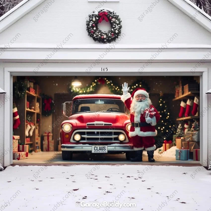Get ready to hear the neighborhood gossip shift from Susie’s fruitcake to your epic Santa’s Garage Christmas Garage Door Cover that brings joy to the whole block.