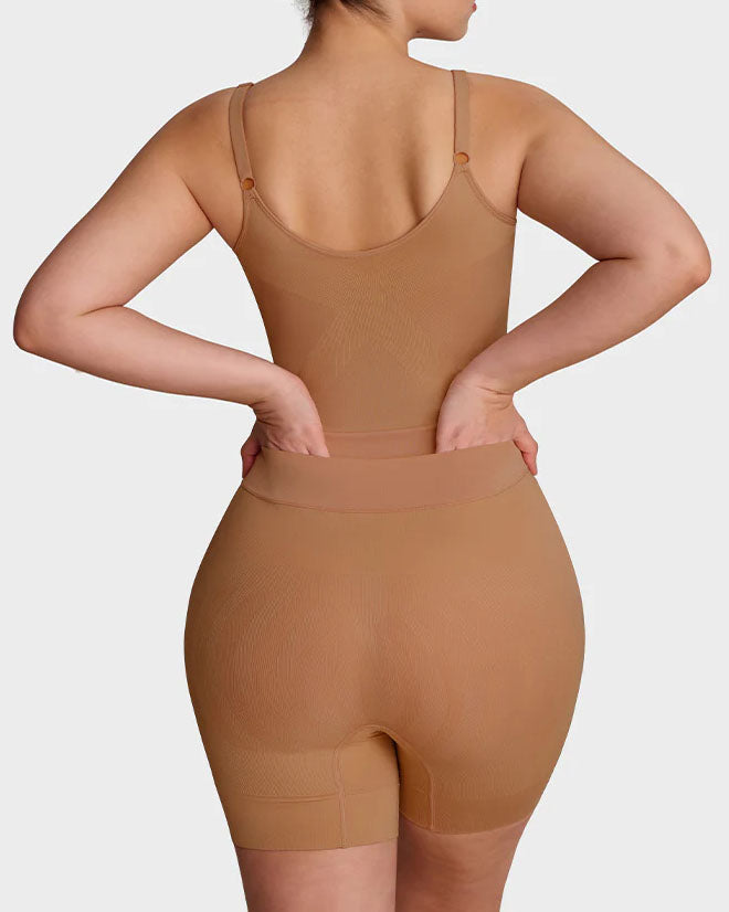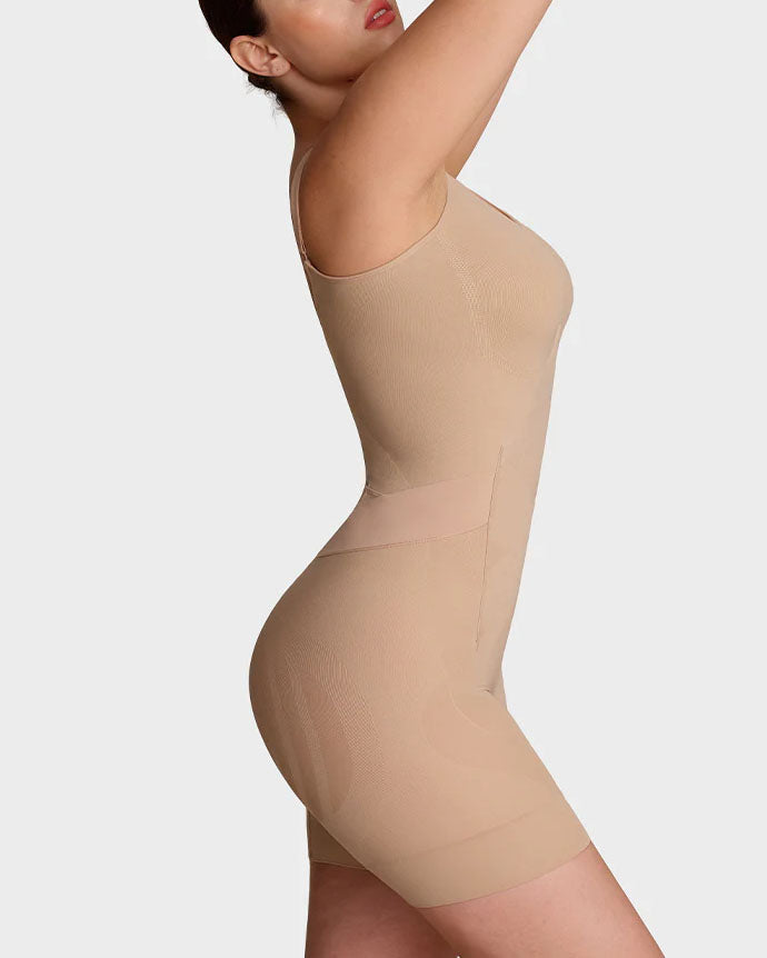 • Real Results You Can See & Feel. The full-coverage bust design lifts and centers, the zoned butt shaping creates a rounder, perkier look, and the mesh shorts slim thighs without squeezing. A clean, smooth finish—front, side, and back.