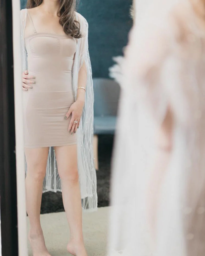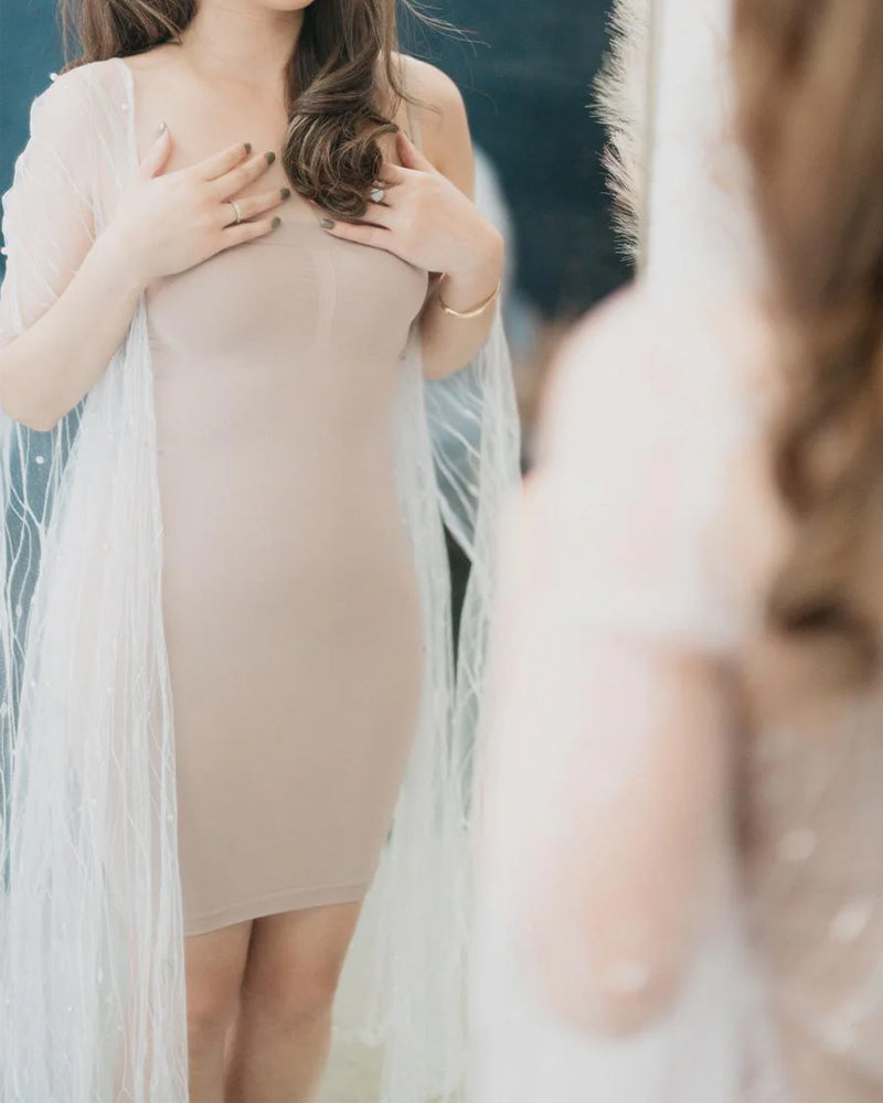 This lingerie free bra one-piece shapewear dress, a hip slip, is also a body dress with a base.