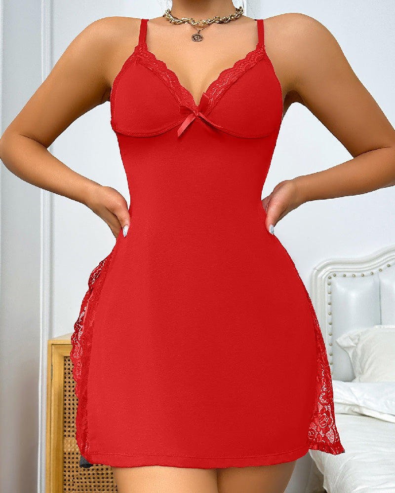 This exquisite nightgown features delicate lace trim and a stylish slit, designed to enhance your natural curves and provide a flattering silhouette. The soft, silky fabric feels luxurious against your skin, while the charming bow detail adds a playful touch. Perfect for romantic evenings or simply lounging in style, this midi nightgown is a must-have for your sleepwear collection.