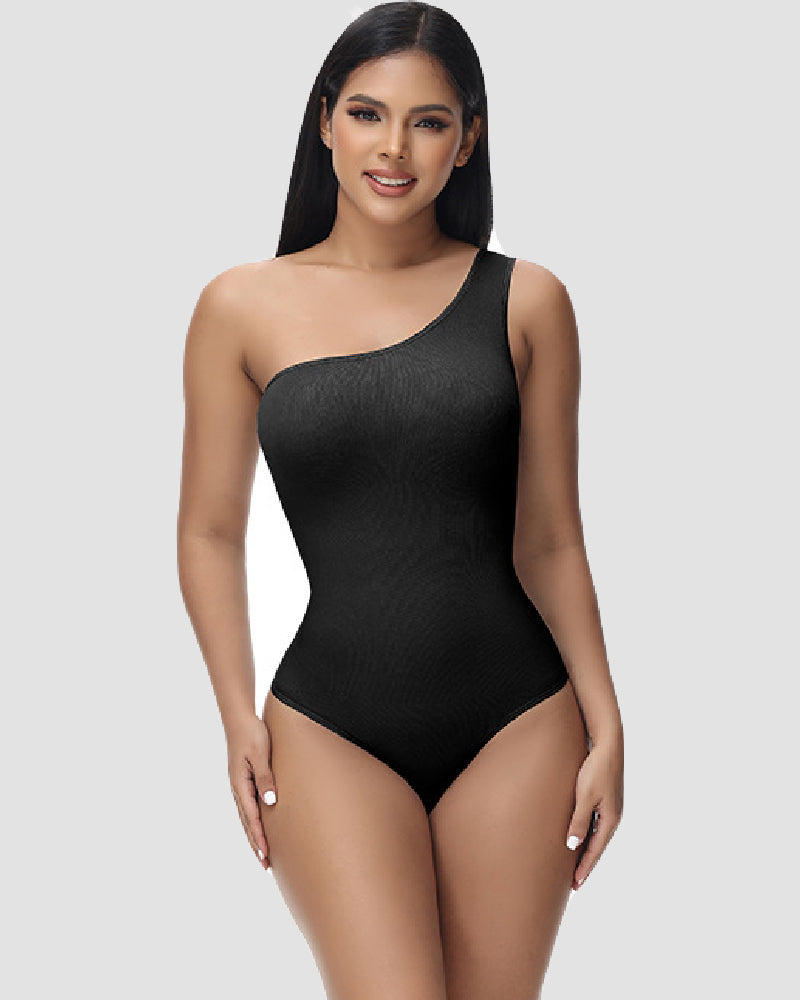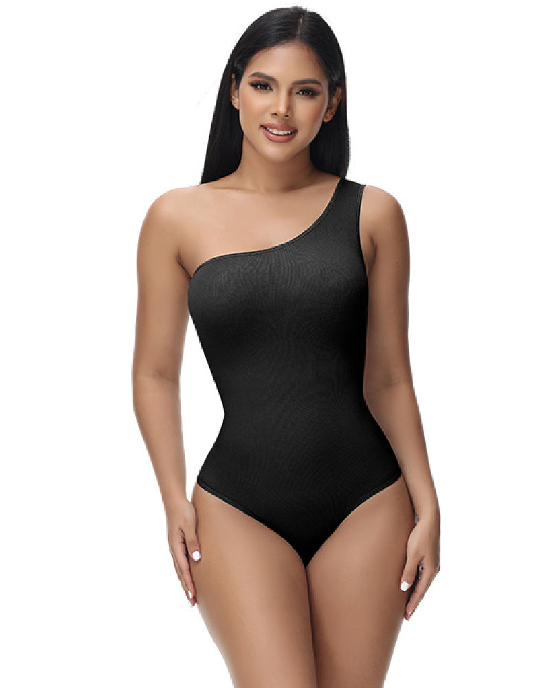 Shapshe® Sexy Ribbed One Shoulder Sleeveless Tank Top Tight Stretch Bodysuit