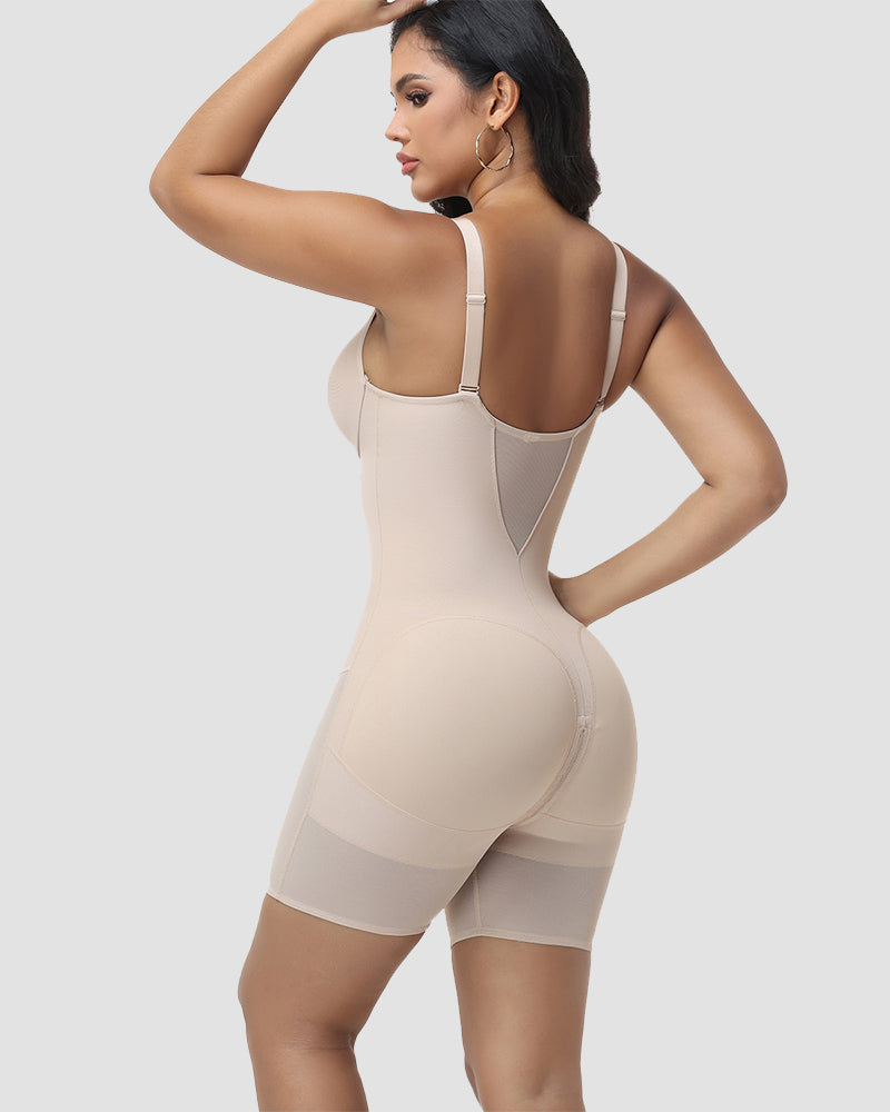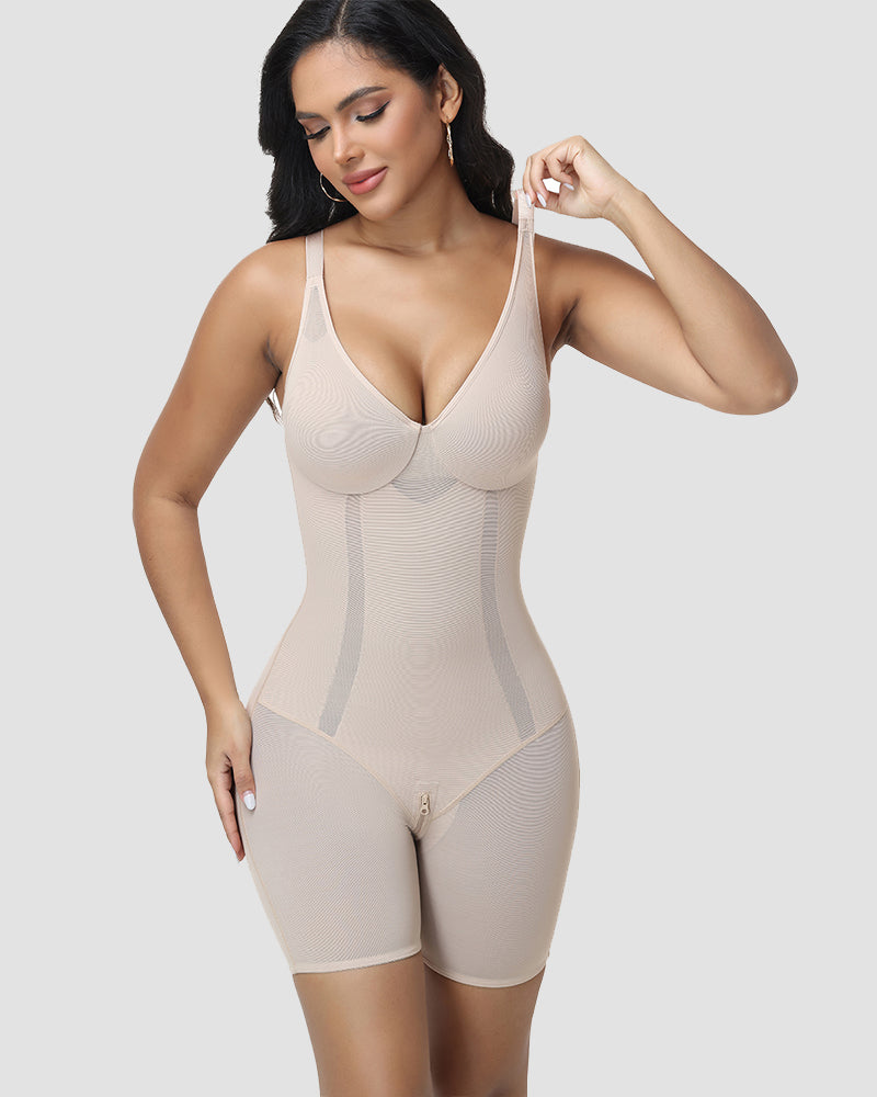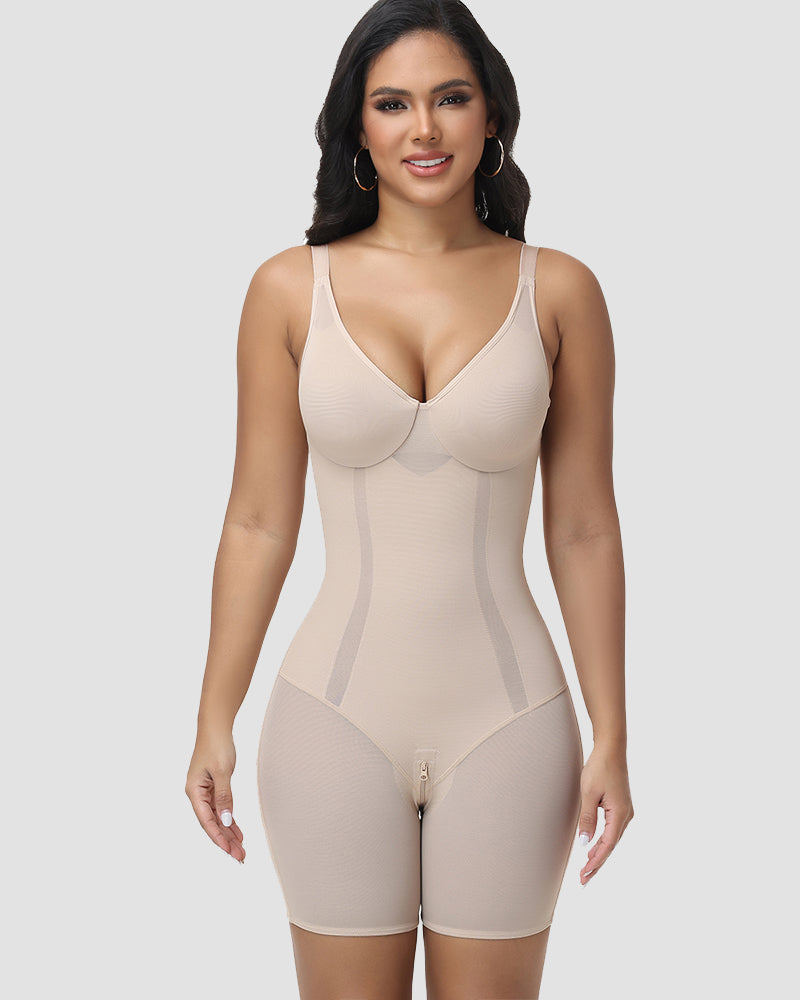 A sleek, all-in-one body shaper that combines seamless compression with breathable mesh panels and a built-in bra, designed to sculpt your silhouette while keeping you cool and supported all day—perfect for everyday wear, special occasions, or post-surgery recovery.