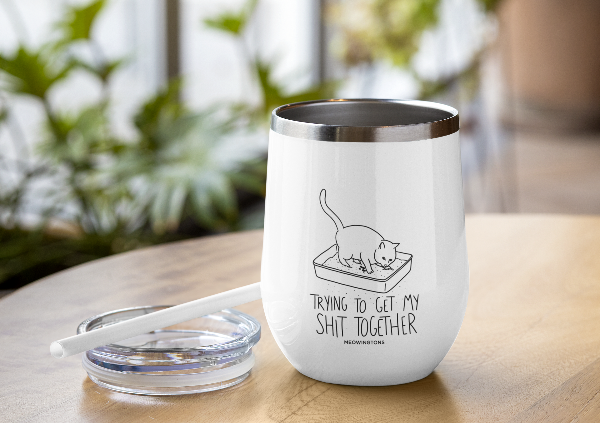 Pobody’s Nerfect. But at least you’re trying to get your shit together. Featuring handwritten block lettering that reads, “Trying to Get My Shit Together” paired with an illustration of a kitty burying its business in the litter box, this cat wine tumbler is guaranteed to bring you a smile. This double-walled vacuum-insulated tumbler will keep your wine cold for up to 12 hours. And with a see-through plastic lid with a leak-proof gasket, you can see when it’s time for your next refill. ;)
