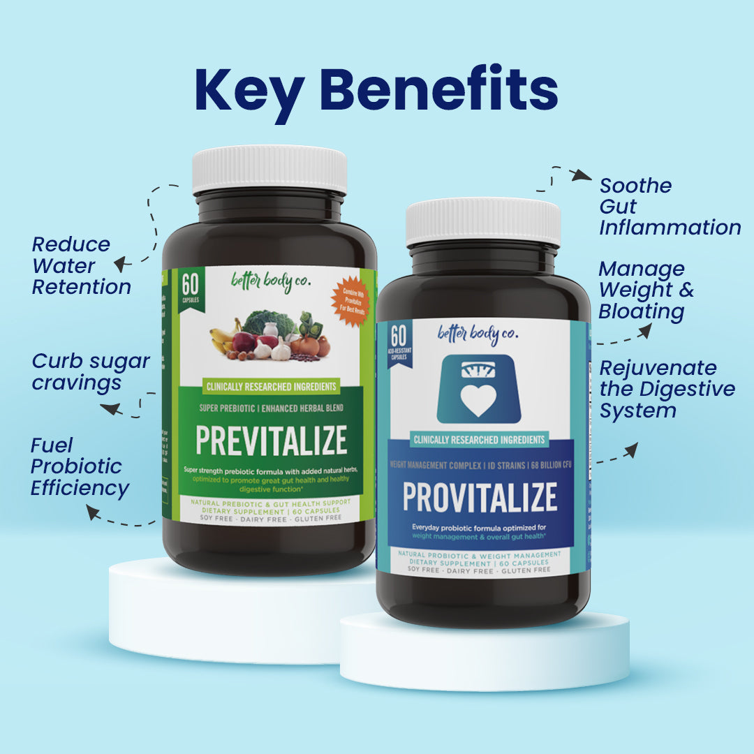 The Slim Gut Bundle is 100% natural. Provitalize & Previtalize contain ingredients only found in nature – which means no chemicals, no preservatives, and no health complications making it the perfect long-term solution.