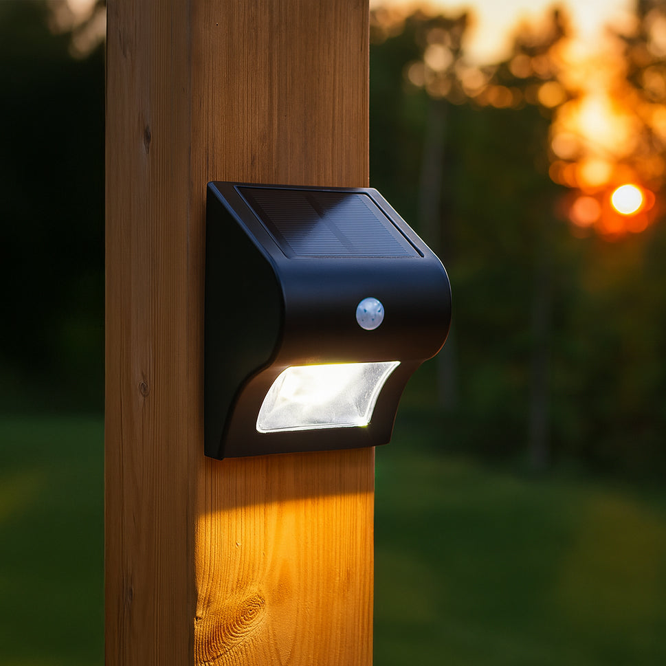Our truly innovative solar motion sensor deck & wall light has a compact design making it a perfect accent that can be placed almost anywhere, adding a sense of security to your home. The light will automatically stay on a low setting at night, the sensor will activate a super bright light when motion is detected. It installs in minutes and is perfect for stairways, decks, docks, posts and door entrances.