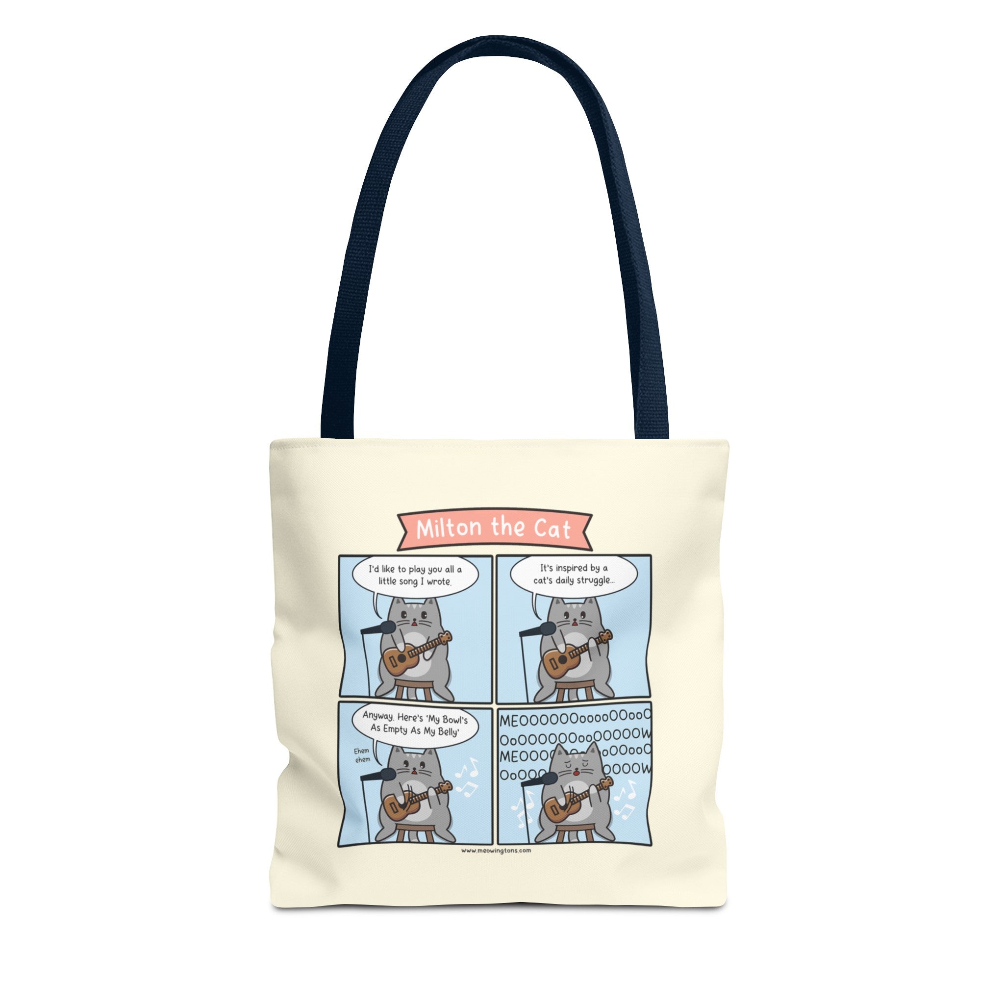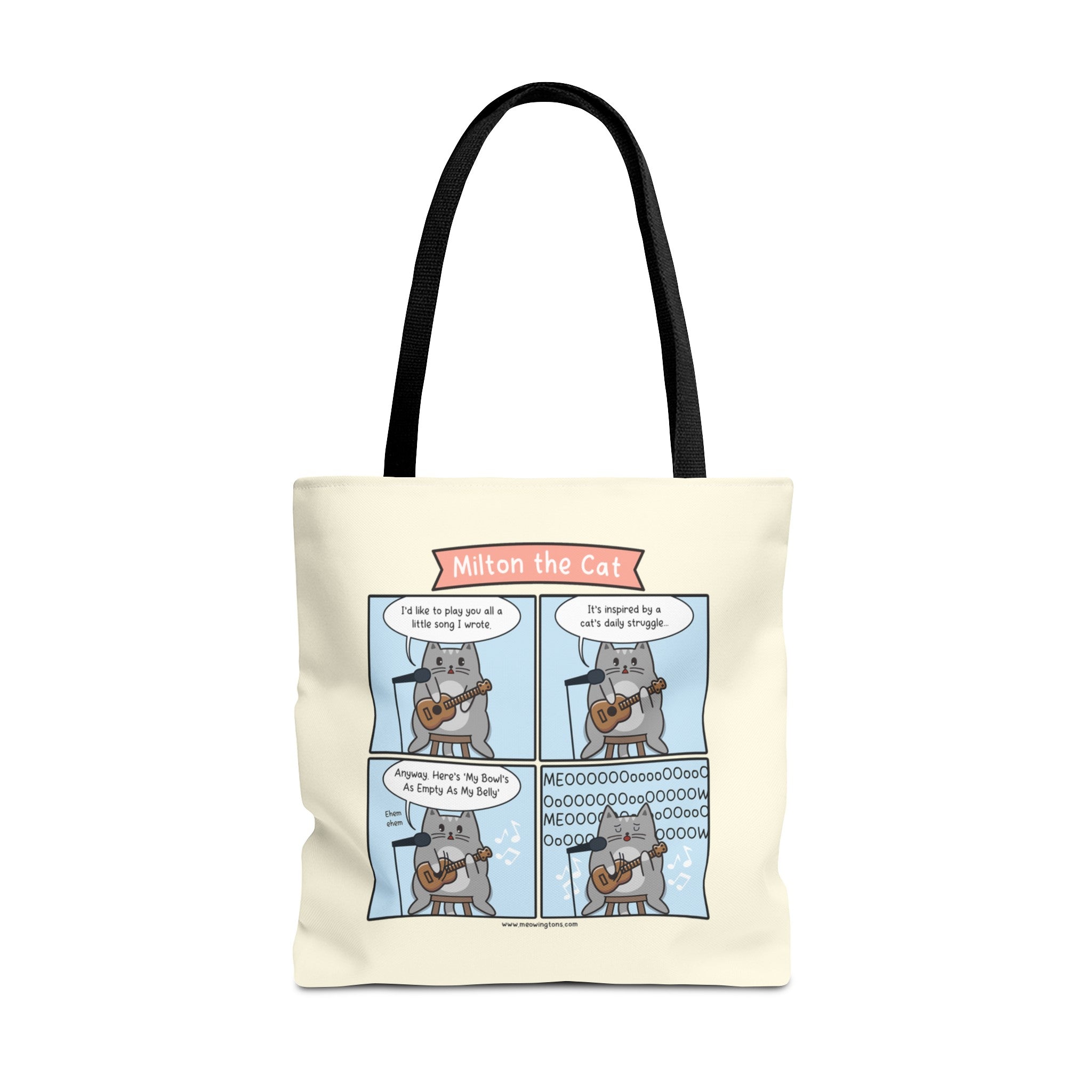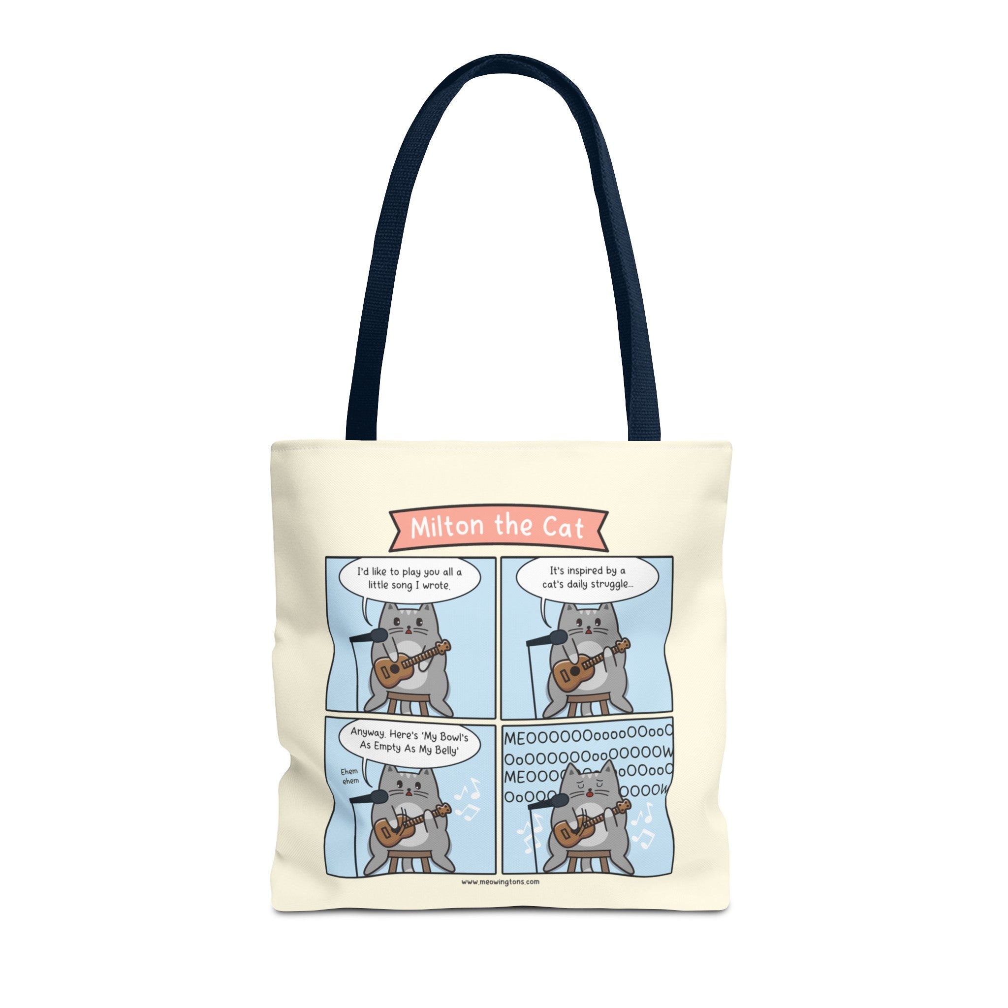 Introducing the Song of My People Cat Comic Tote Bag – a charming addition to our Milton the Cat Comic Collection, featuring everyone's favorite sassy tabby and his adorable sidekick, Millie. These two mischievous felines steal the show in our webcomic, Milton the Cat.