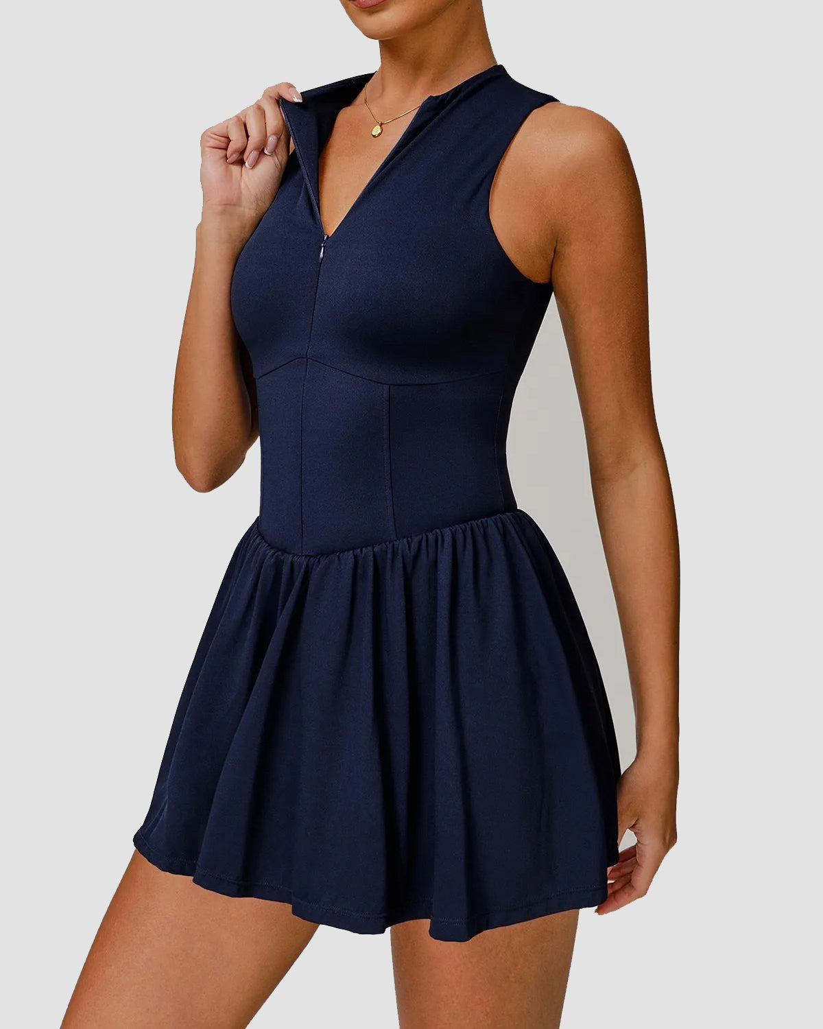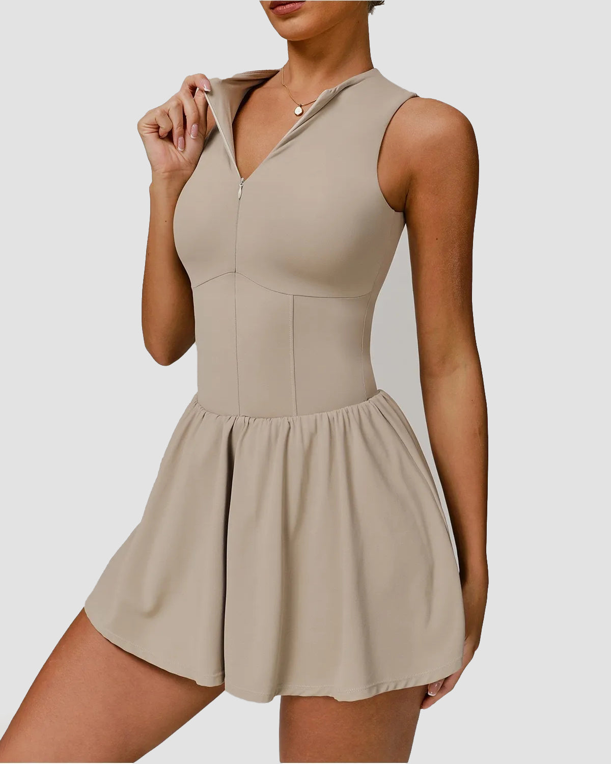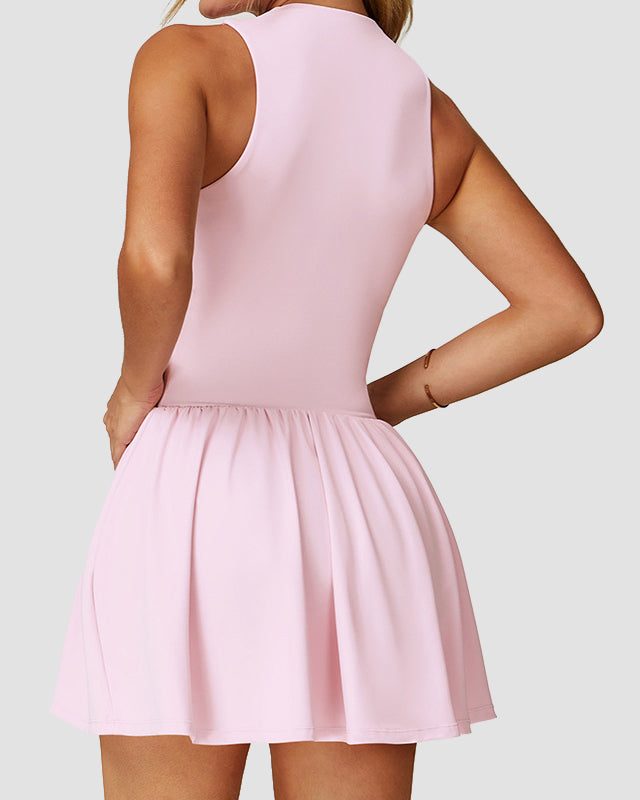Check out the Mini Sports Dress – where sporty meets chic in one perfect package! This half-zip active dress features a flattering, cinched waist paired with a flowy skirt and built-in shorts for all-day comfort and coverage. Whether you’re serving a yoya,tennis or tackling your daily errands, its adjustable neckline and breathable, stretchy fabric move with you, keeping you effortlessly chic and cool no matter where the day takes you.