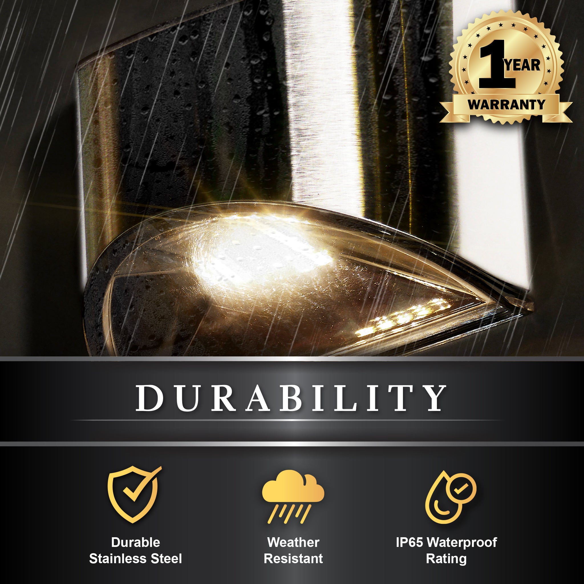 Add a streamlined contemporary design to your landscape with our durable stainless steel deck and wall light. The warm-colored light cascades downward to create a soft ambience. This compact design makes it a perfect accent that can be placed almost anywhere. An appealing addition to any landscape such as decks, stairways, patios, gardens and much more.