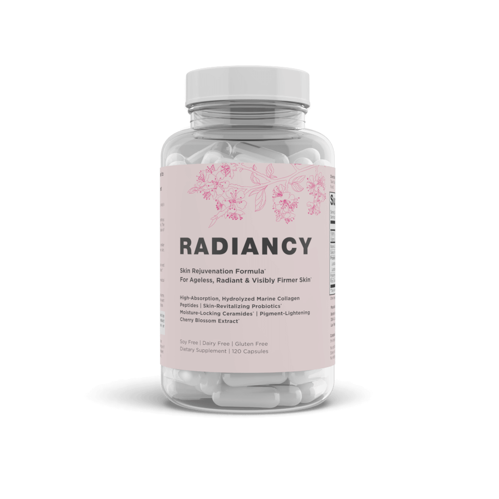 Radiancy is our skin rejuvenation supplement. Helps repair, hydrate aging skin with its unique blend of probiotics, marine collagen & cherry blossom extract that helps ease menopausal skin symptoms, wrinkles, sagging & dark spots.